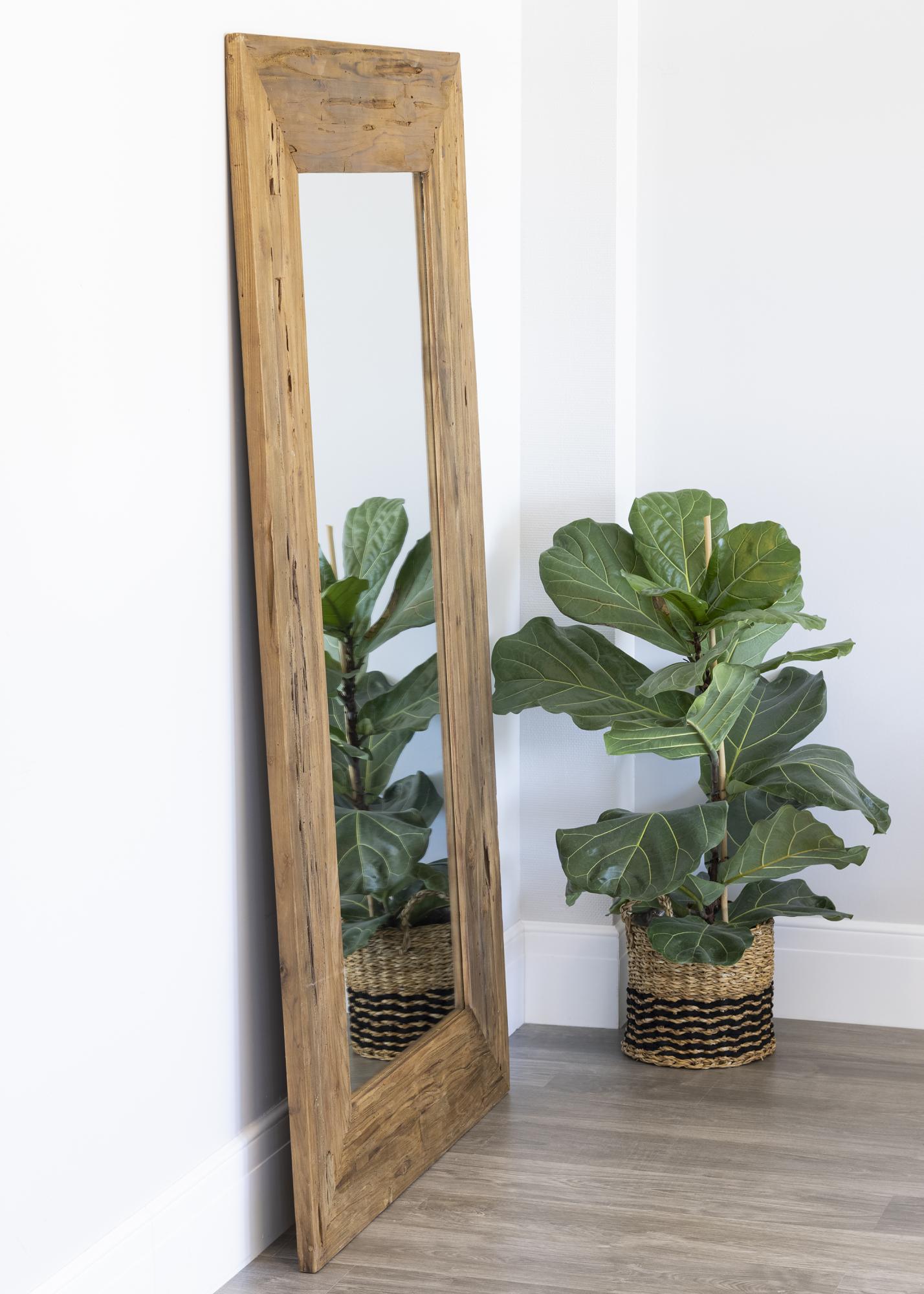 Durch seine Maße passt der Spiegel überall dort, wo er optisch Räume erweitern kann, z.B. als Flurspiegel oder als eine rustikale, formschöne und funktionelle Komponente im Schlaf- oder Wohnzimmer.