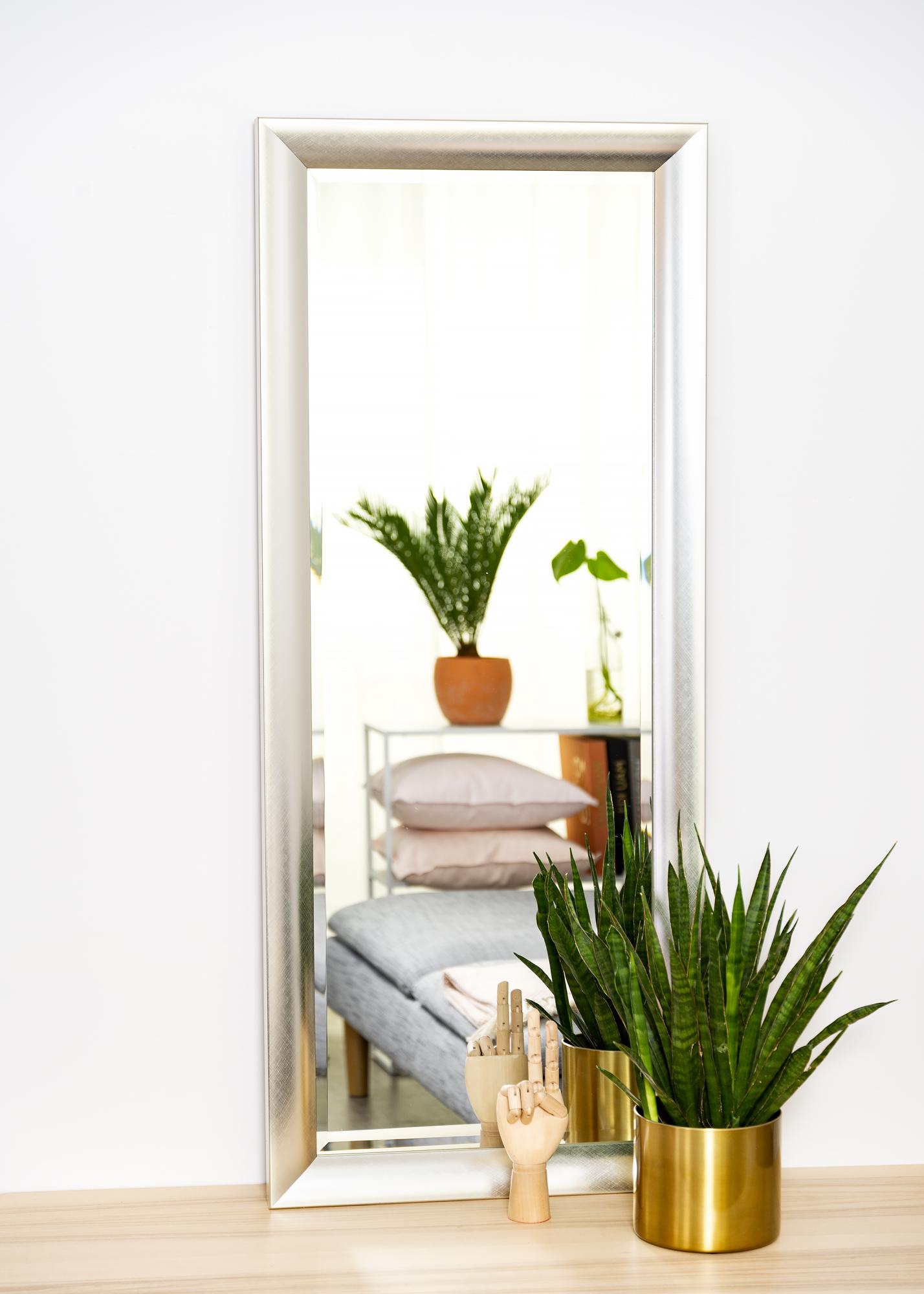 Verleihe deiner Einrichtung mit diesem stilvollen Spiegel zusätzlichen Luxus! Die Rahmenoberfläche trägt ein gebürstetes symmetrisches Muster, das zusammen mit den geglätteten Glaskanten ein exklusives Gefühl erzeugt. Du hast die Wahl zwischen den Formaten 50x130 cm und 60x150 cm.