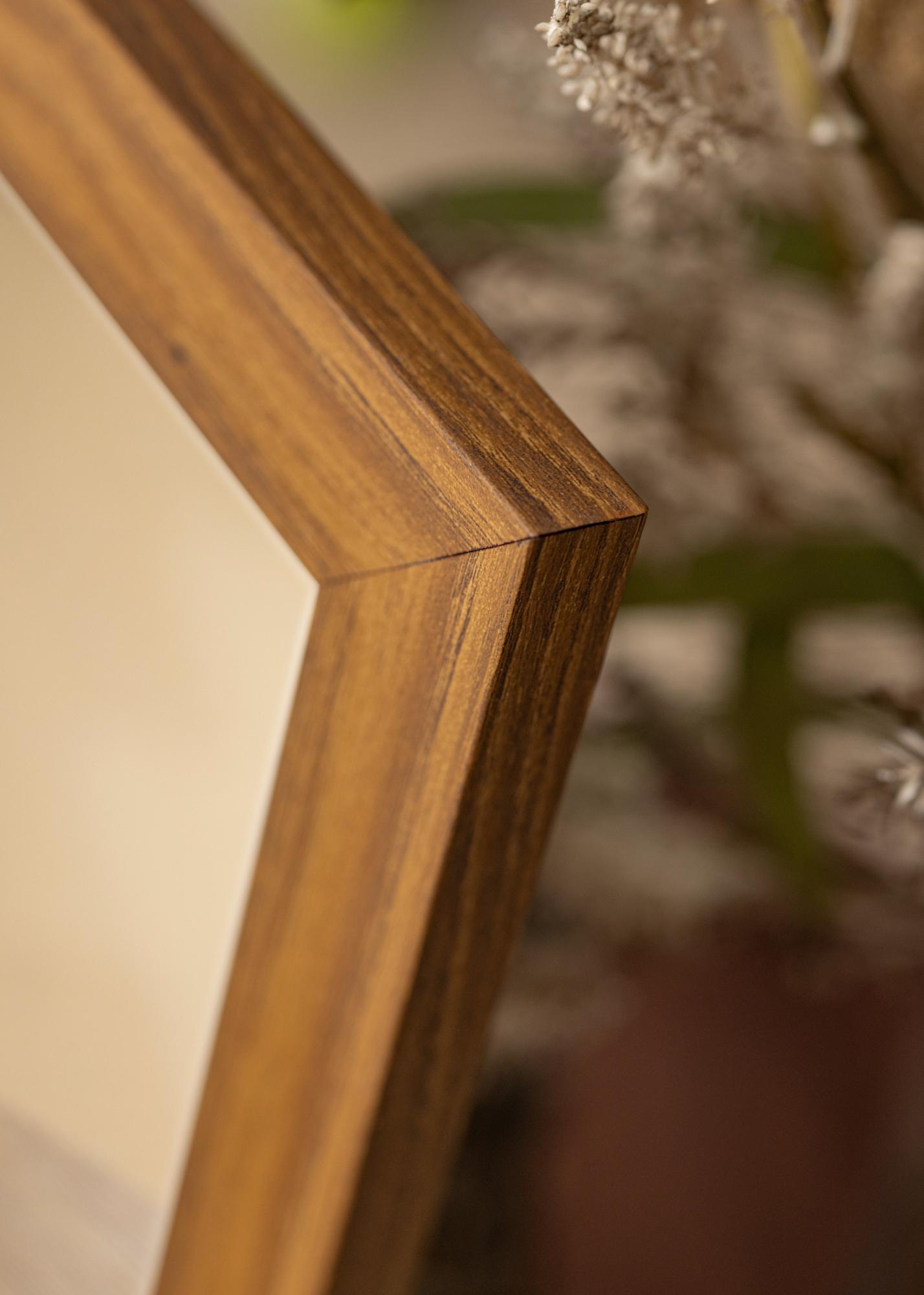 Hellbraun lackierter Holzrahmen aus keilverzinktem Kieferholz mit einem breiten Profil von 40 mm. Der perfekte Rahmen, wenn du auf der Suche nach einem schönen Holzrahmen mit breitem Profil bist.