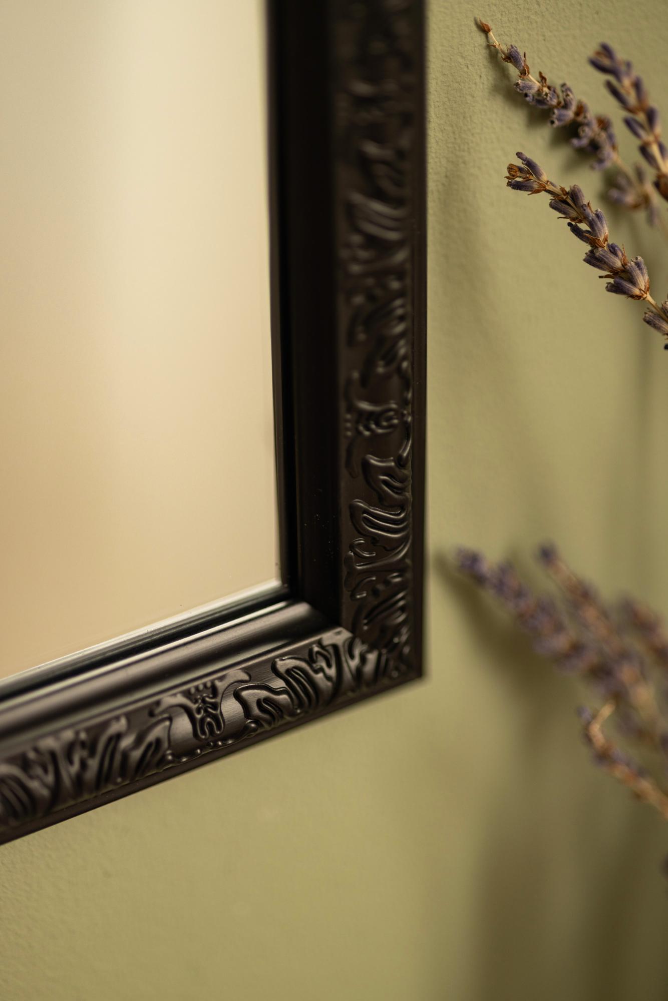 Rahmenberater starten »Nost heißt diese Reihe von Wandspiegeln. Der Rahmen wurde reich mit unregelmäßigen Symbolen dekoriert, die ihm einen mysteriösen Eindruck verleihen.