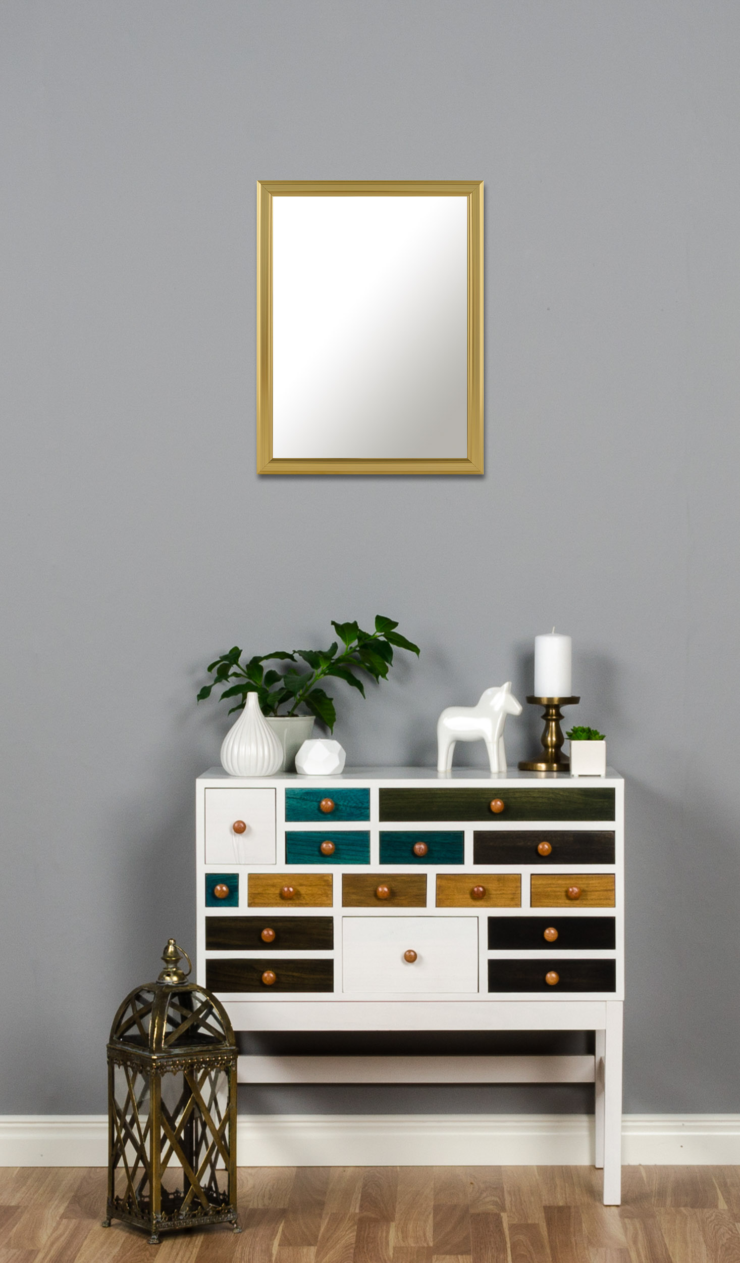Planst du, goldene Rahmen sowie weitere Einrichtungsgegenstände mit einem goldenen Spiegel zu kombinieren? Dann haben wir eine Reihe von schönen Designs zur Auswahl! Dieses Design hat eine angenehme Profilierung mit dezenten Streifen, die in verschiedenen Goldtönen variieren.