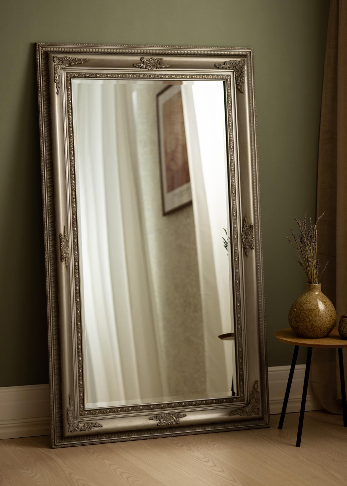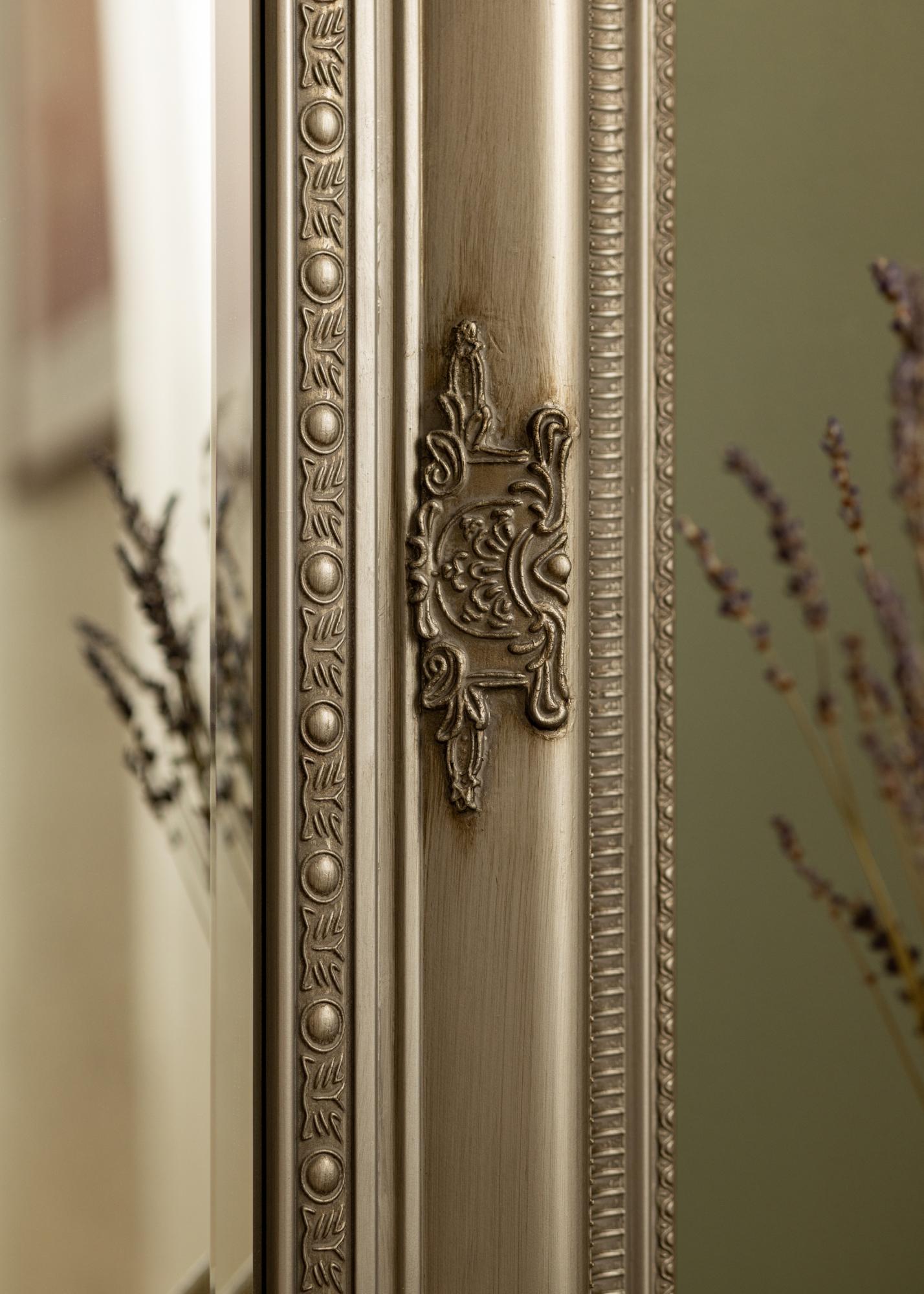 Unsere Serie an Spiegeln mit dem Namen Palermo Silber wurde klassisch italienisch verziert, mit einem graziösen Dekor, das die Ecken sowie den Mittelpunkt markiert.