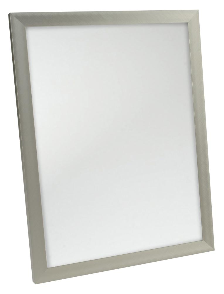 Schöner moderner Spiegel mit einem Rahmen aus gebürstetem Aluminium, der gut in jedes Zuhause mit einer schicken Einrichtung passt. Das graue Metall macht einen kühlen Eindruck und lässt den Spiegel einen diskreten Platz an der Wand einnehmen, ohne mit anderer Innenausstattung zu konkurrieren. Trotz seines schönen Designs macht er einen robusten und stabilen Eindruck. Kombiniere den Spiegel mit anderen Dekorationsgegenständen aus Metall oder Fotografien und Drucken in ähnlichen Rahmen, um ein großes Ganzes zu erschaffen.