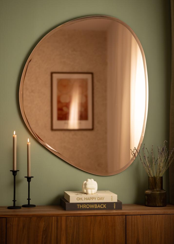 Dieser schöne Spiegel mit 95x110 cm hat Kanten mit Facettenschliff und stammt von der dänischen Marke Incado. Der Schliff am Rand vermittelt eine luxuriöse Note und das roségoldene Spiegelglas macht diesen Spiegel modisch und frisch.