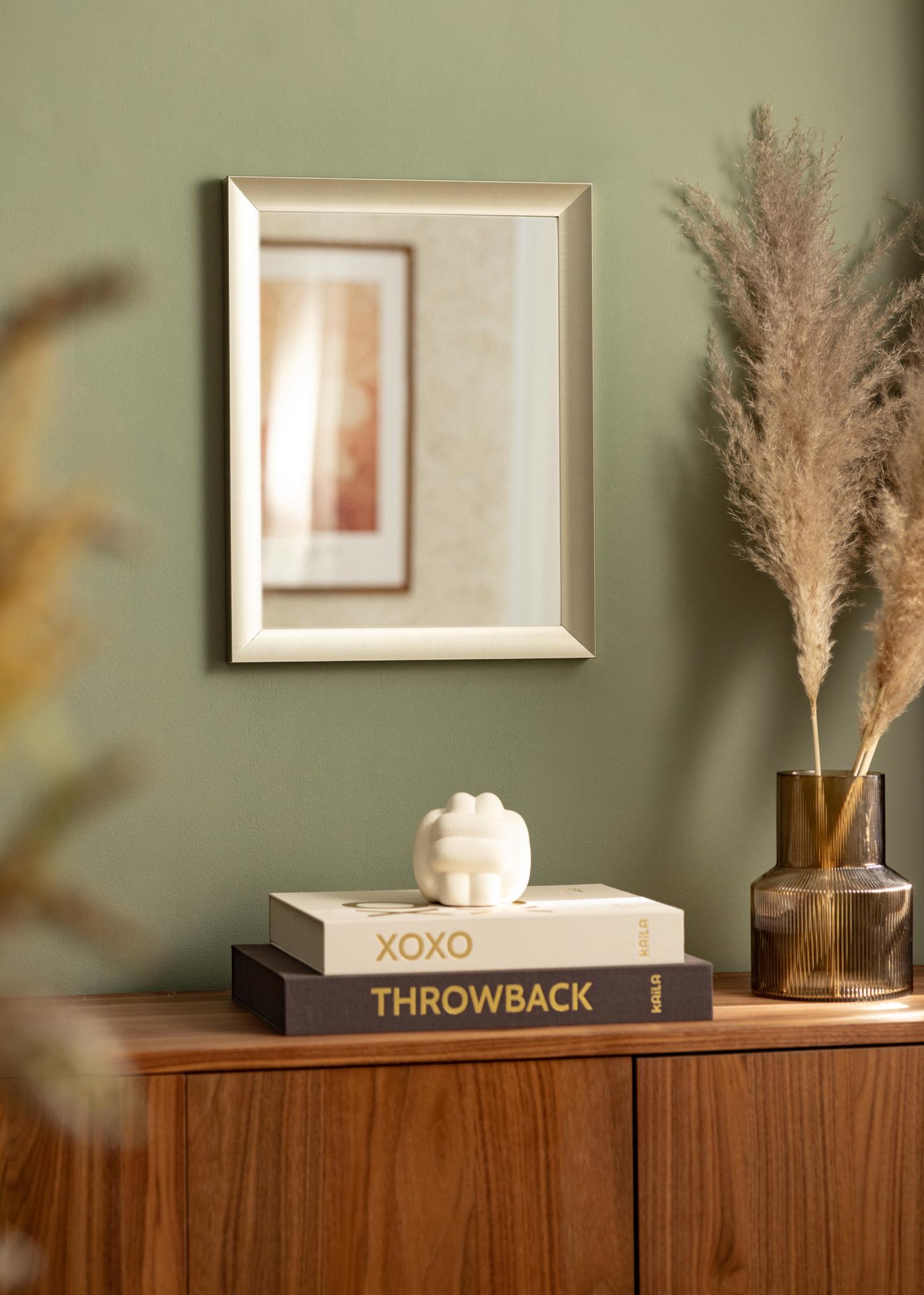 Schicker Spiegel mit einem diamantfarbigen Rahmen sowie einem runden Profil, das einen weichen Eindruck vermittelt, aus hochwertigem Aluminium. Die neutrale Farbe und die klare Form des Spiegels passen in jedes Zimmer und zu jeder Art von Einrichtung, am besten wirken jedoch in Kombination mit Pastellfarben. Hänge den Spiegel gemeinsam mit grafischen Zeichnungen und Fotografien mit schwarzen Rahmen auf und kombiniere ihn mit einer Einrichtung aus Glas oder in Schwarz, um eine Ganzheit im Raum zu schaffen.