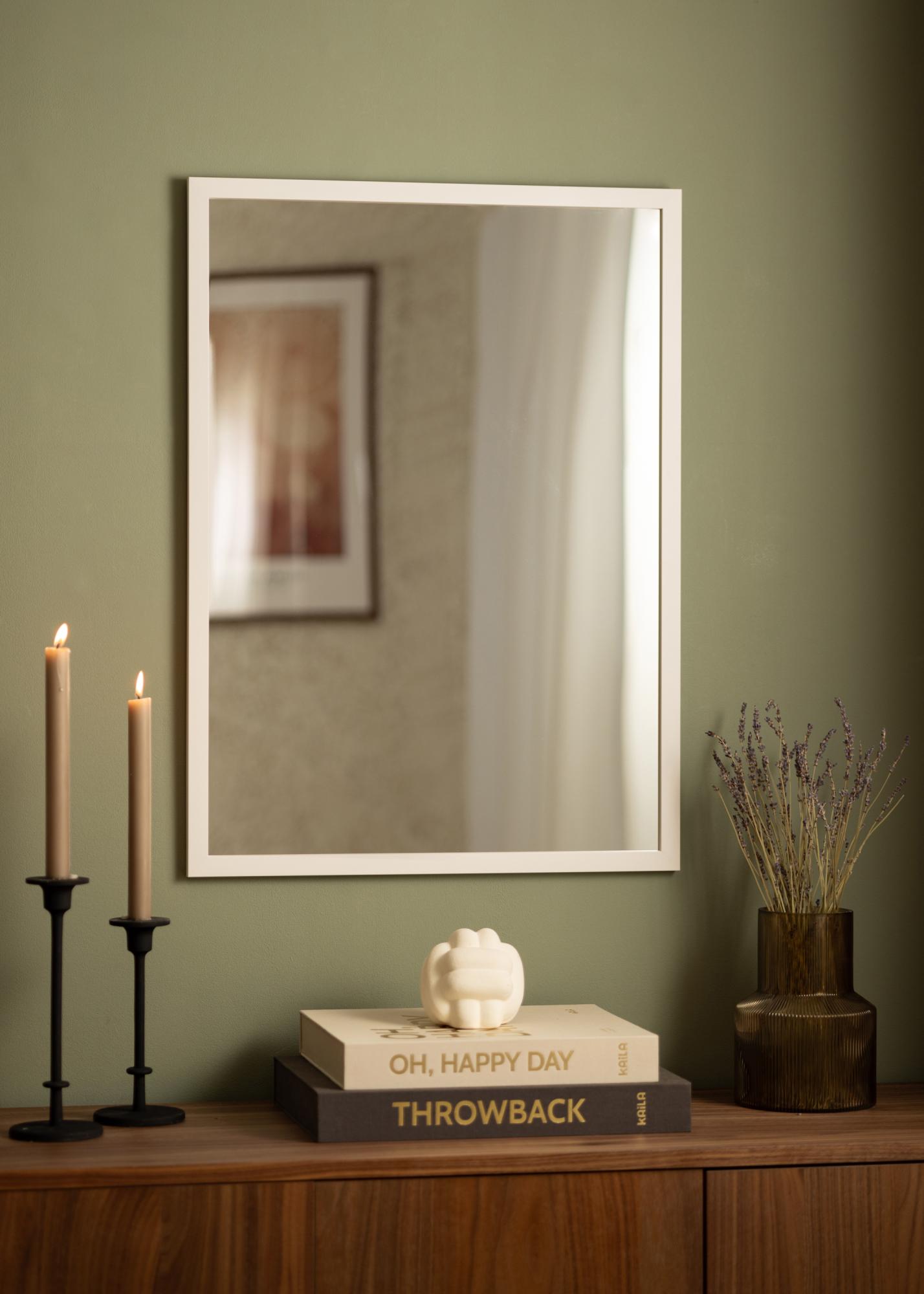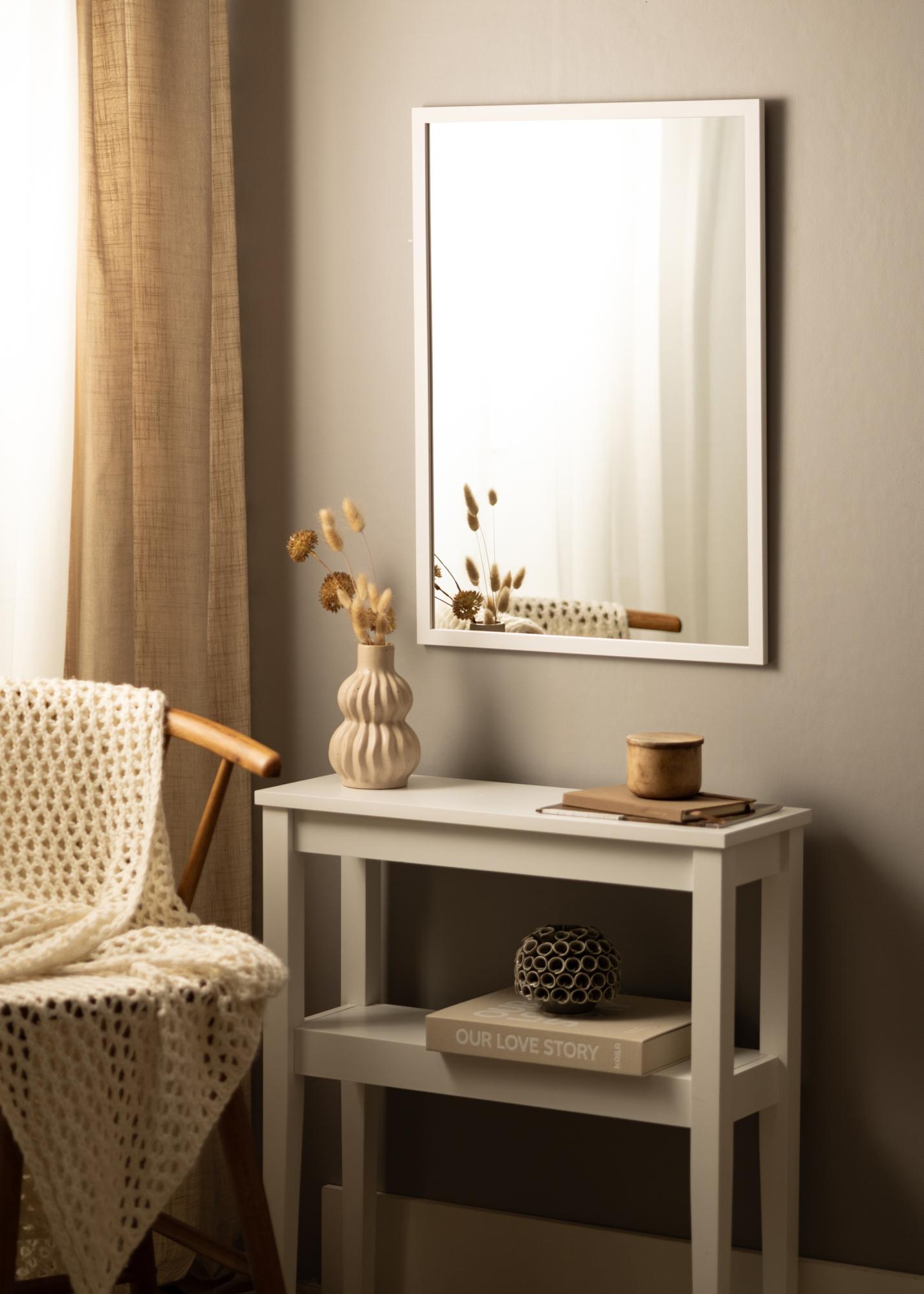Das schnörkellose Design mit dem 22 mm breiten und 15 mm tiefen Rahmen aus weiß gestrichenem Abachi-Holz macht diesen Wohnspiegel zu einem hübschen Wohnaccessoire, das in jeder Wohnung Platz findet. Der klassische Charakter des Spiegels wird durch das ungefärbte Spiegelglas zusätzlich unterstrichen.