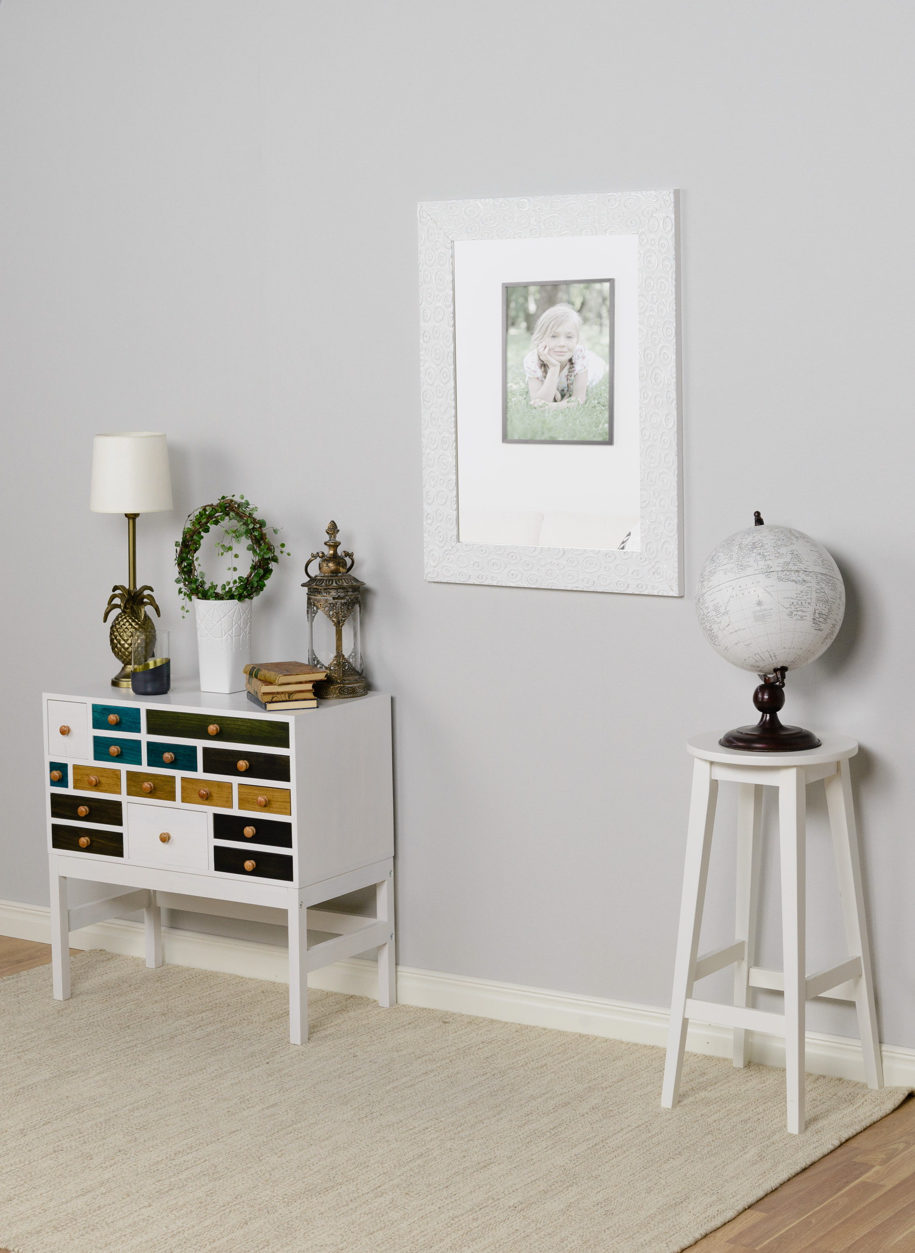 Verleihen Sie Ihren Wänden ein wenig Muster, dann macht es viel mehr Spaß, sie anzusehen! Hier haben wir einen hübschen Spiegel in Weiß mit einer kreisgeformten Oberfläche. Der Spiegelrahmen ist aus Holz hergestellt, das von einem nachhaltigen Holzbestand kommt. Da es ihn in mehreren verschiedenen Größen gibt, finden Sie problemlos einen, der genau in Ihr Zuhause passt.