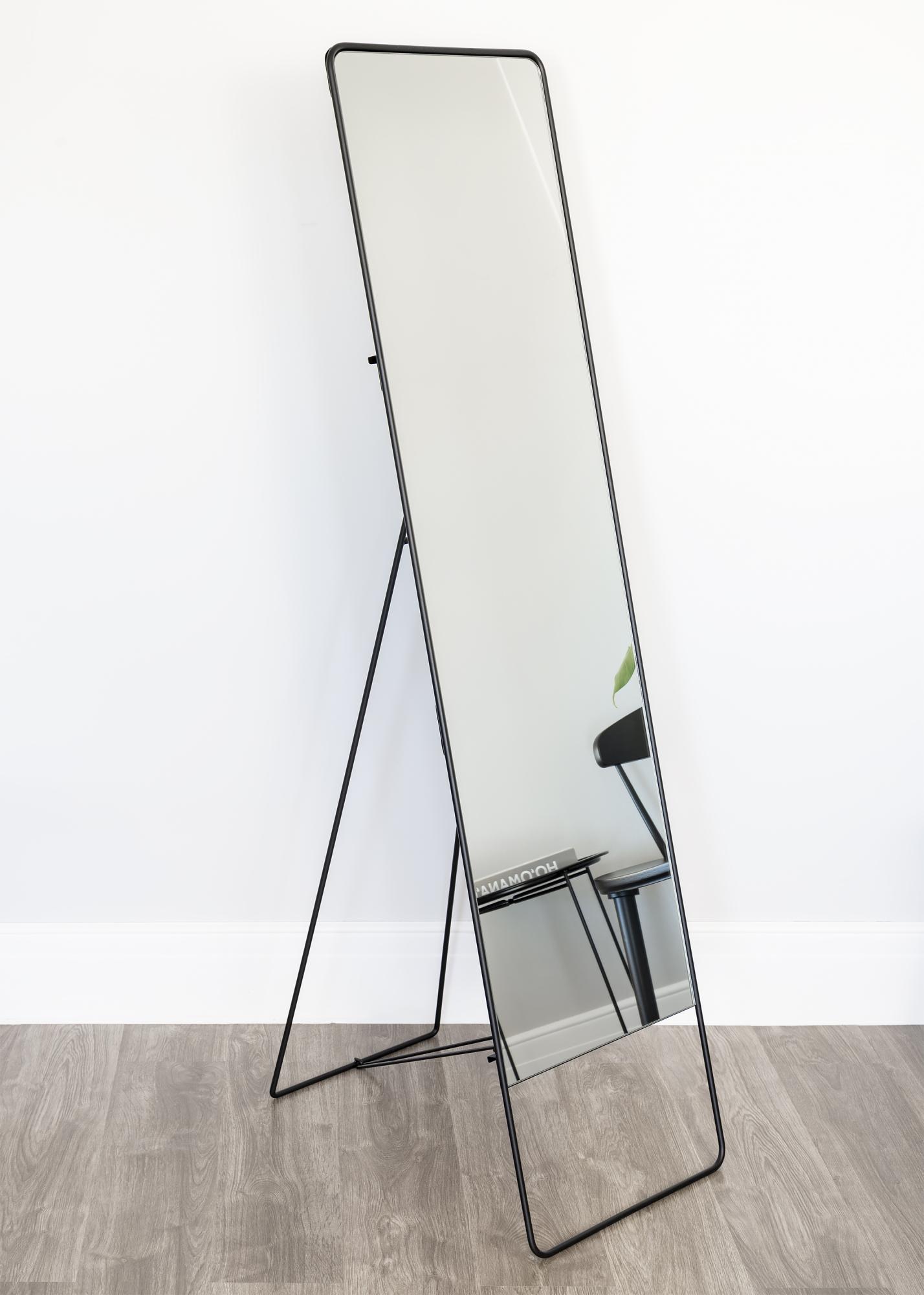 Wunderschöner Bodenspiegel von House Doctor in zeitlosem Design mit engen, präzisen Linien. Der Spiegel besteht aus schwarz lackiertem Eisen und passt perfekt in eine moderne Einrichtung im skandinavischen Stil.