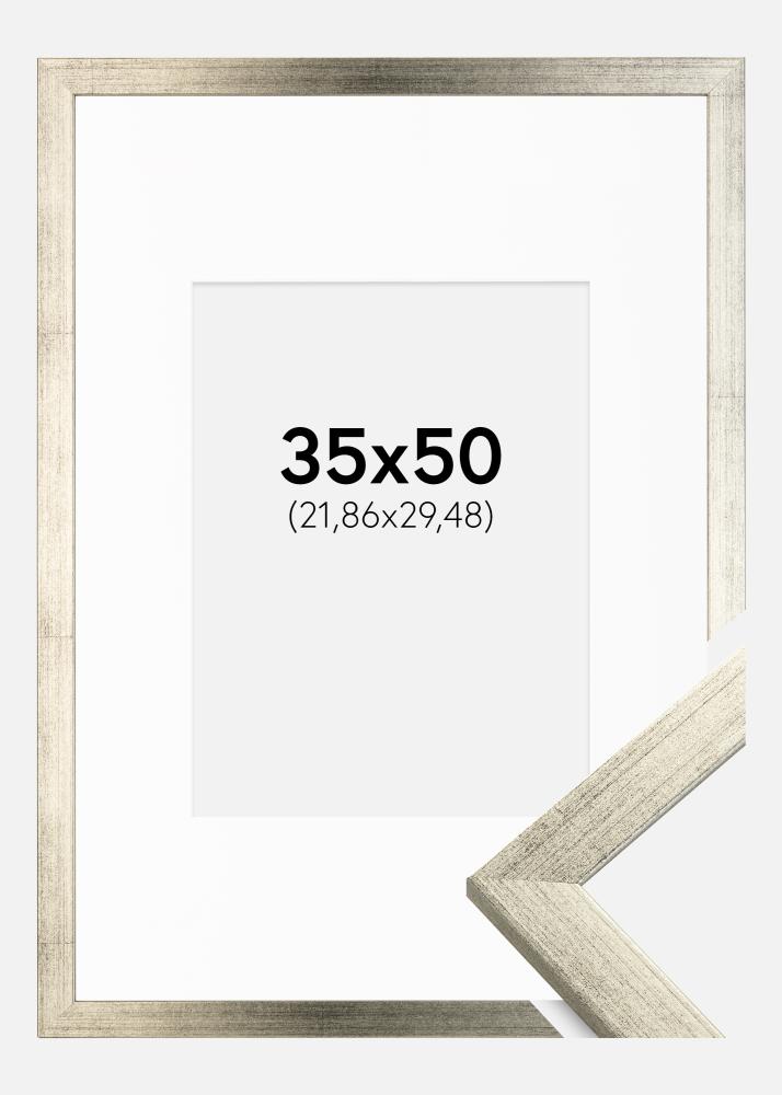 Rahmen Stilren Silber 35x50 cm - Passepartout Weiß 9x12 inches