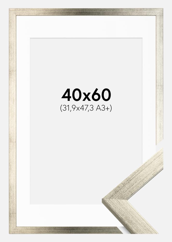 Rahmen Stilren Silber 40x60 cm - Passepartout Weiß 32,9x48,3 cm (A3+)