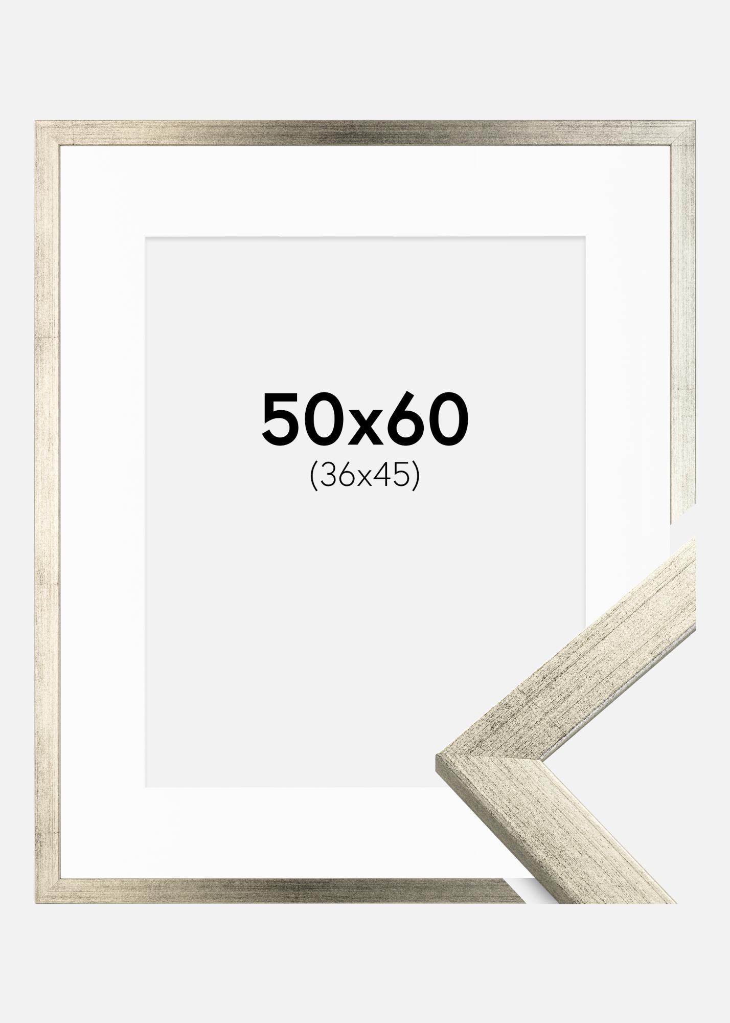 Rahmen Stilren Silber 50x60 cm - Passepartout Weiß 37x46 cm