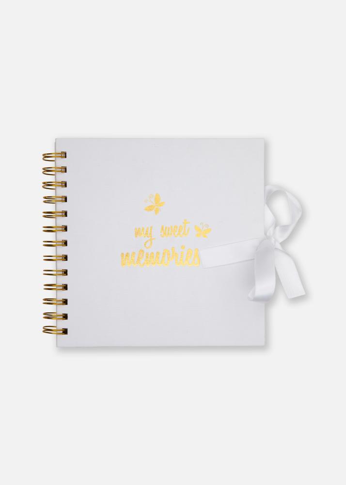 Ein süßes, spiralgebundenes Album, das du mithilfe von goldenen Bändern verschließen kannst. Ein perfektes Album, um all deine schönsten Erinnerungen aufbewahren können! Auf der Vorderseite ist der Text "My sweet memories" in Gold gedruckt, umgeben von Schmetterlingen. Das Album enthält 24 weiße säurefreie Blätter.
