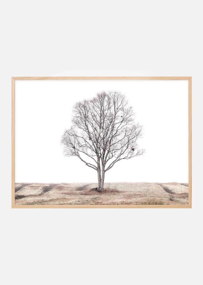 Ein kühles Poster mit einem einsamen Baum im Winter. Der kahle Baum steht in der Mitte eines schneebedeckten Feldes mit einem strahlend weißen Hintergrund dahinter. Er ist majestätisch, vermittelt aber auch ein Gefühl von kaltem Wetter. Holen Sie sich mit diesem eindrucksvollen Bild ein Stück Winter in Ihr Zuhause und erhellen Sie eine dunkle Wand.