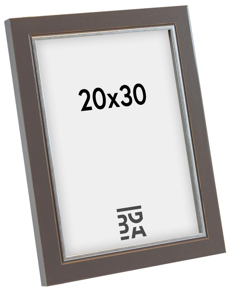 Exklusiver grauer Fotorahmen aus Holz mit einem kleinen besonderen „Twist" in Form einer schönen silberfarbenen Innenkante. Eine ausgezeichnete Wahl, wenn du auf der Suche nach einem Bilderrahmen bist, der dem Motiv eine besondere Dimension verleiht. Ideal geeignet, um ihn für eine schöne Collage auf einer Bilderleiste zu platzieren.
