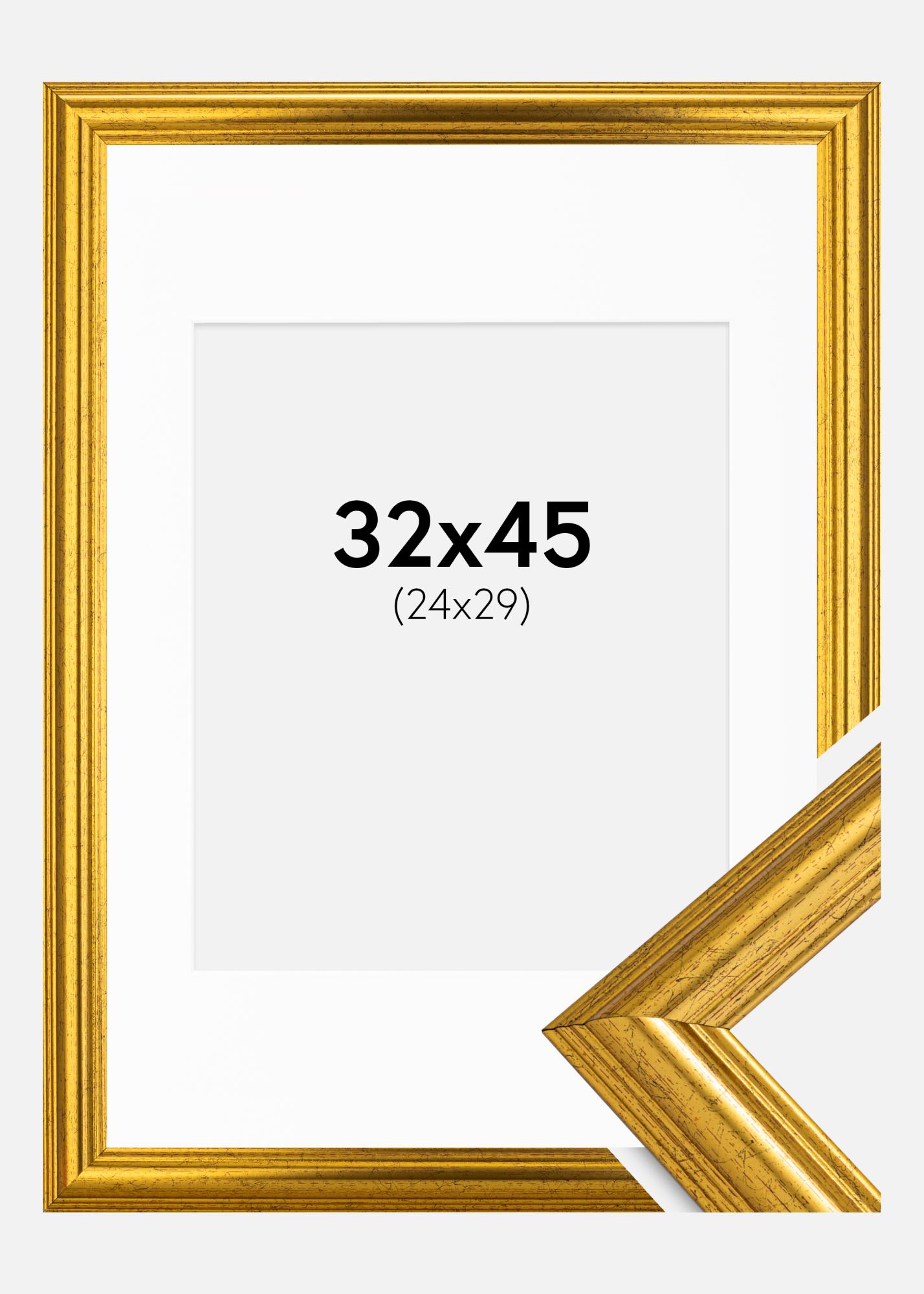 Rahmen Västkusten Gold 32x45 cm - Passepartout Weiß 25x30 cm