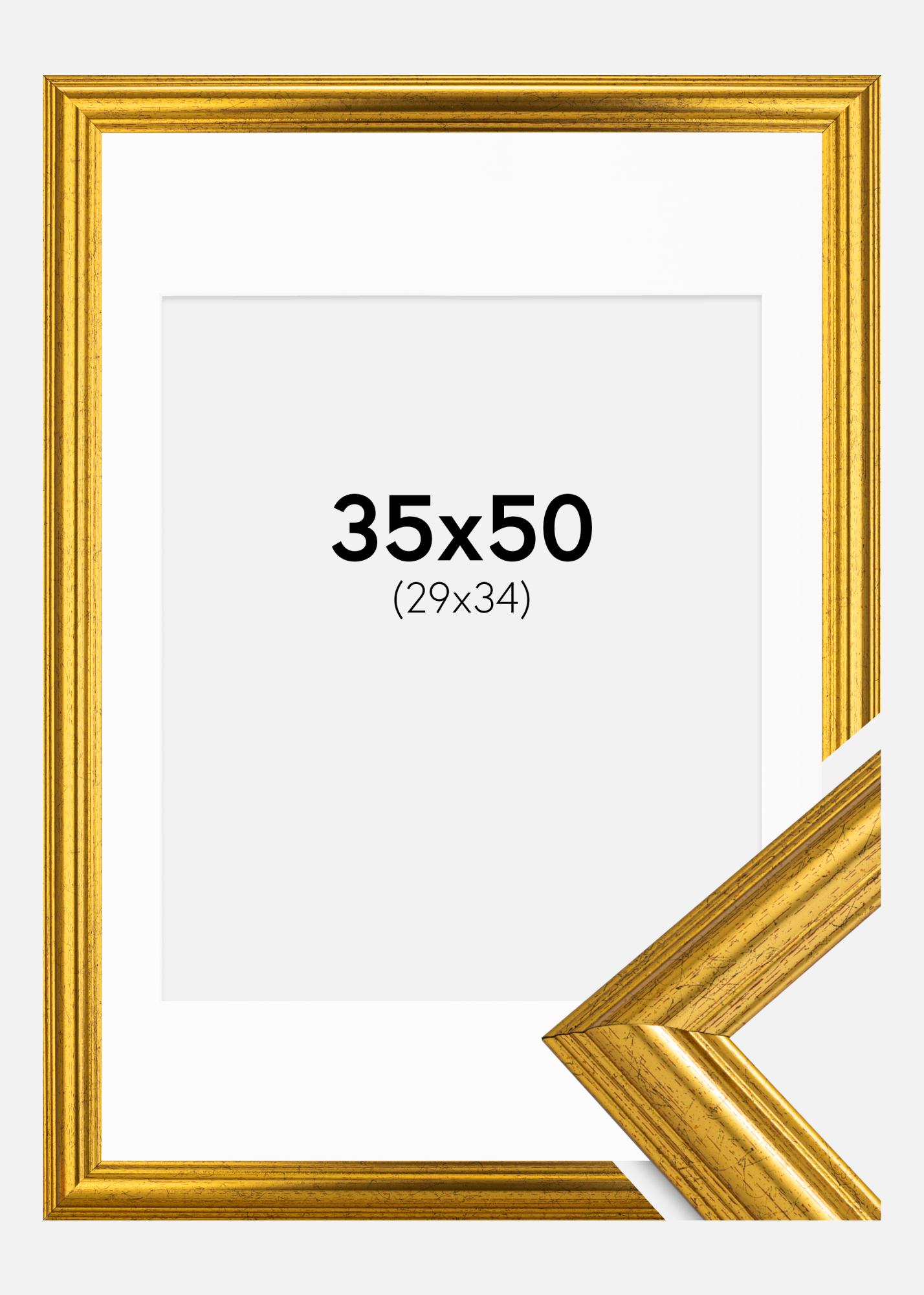 Rahmen Västkusten Gold 35x50 cm - Passepartout Weiß 30x35 cm