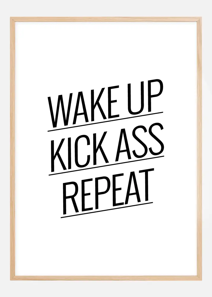 Wake up Kick ass Repeat - Poster (40x50 cm)