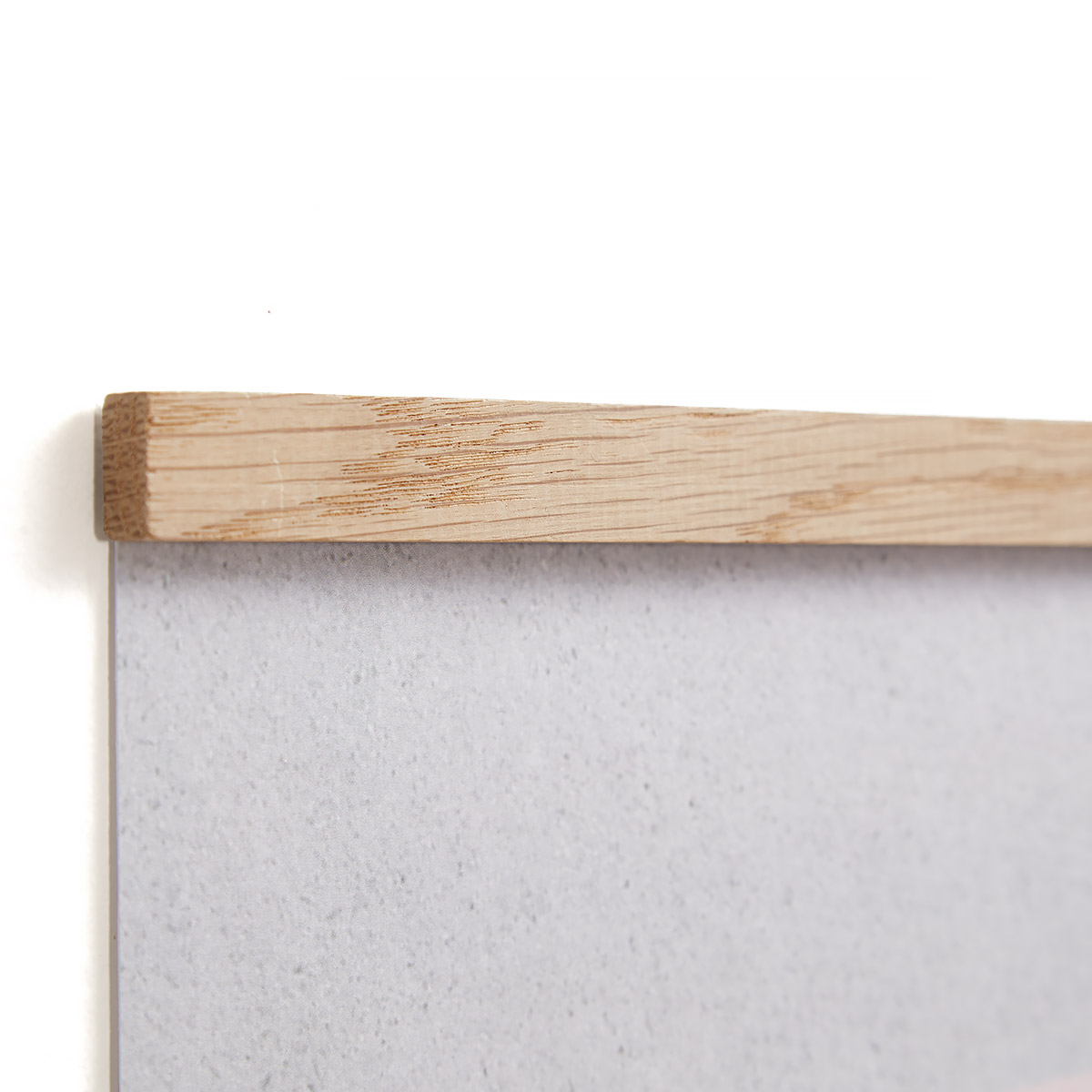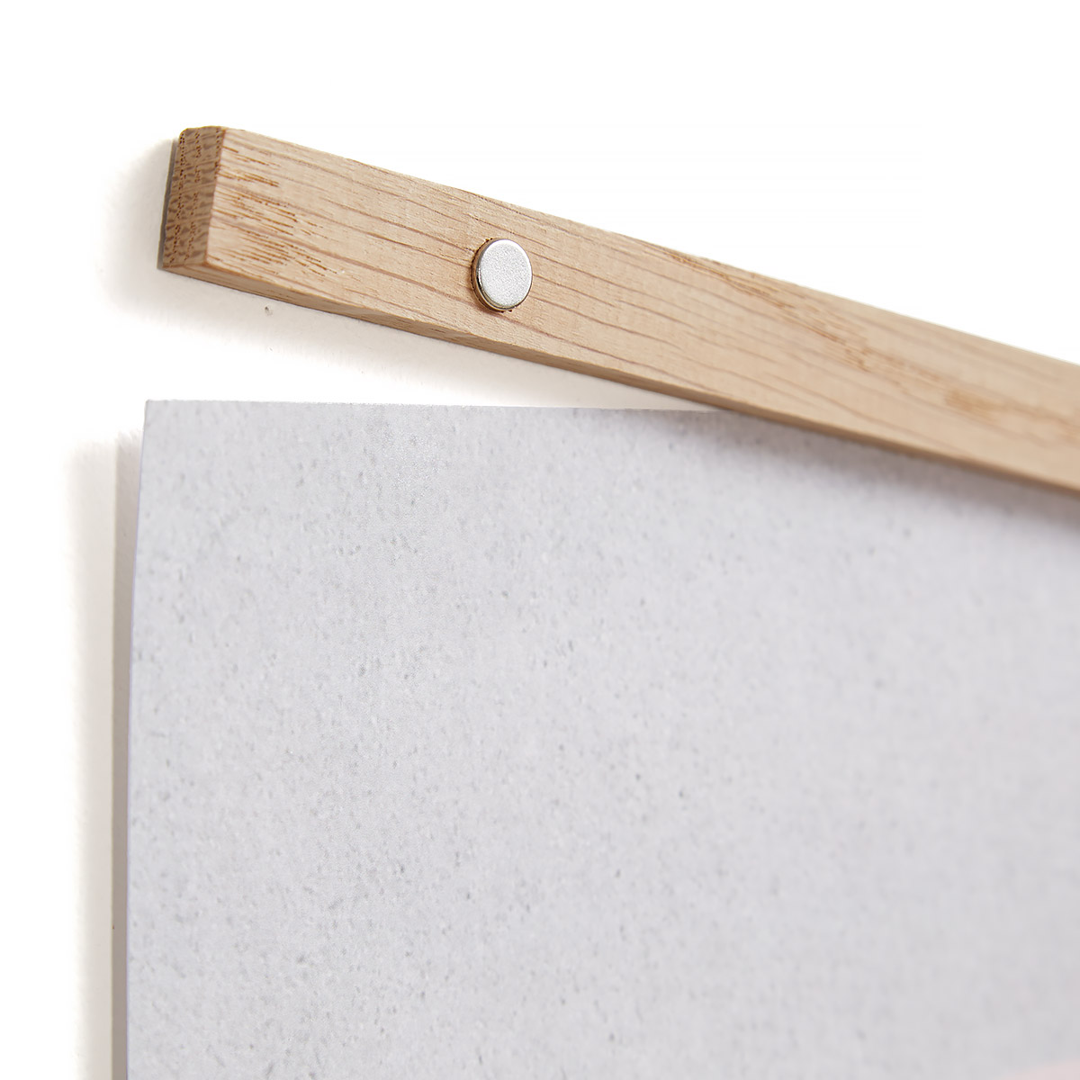 Mit den mitgelieferten Magnetnägeln kannst du diese Leisten direkt an der Wand befestigen und dazwischen kommt dein Poster.