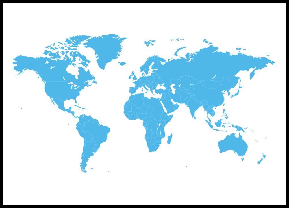 Weltkarte Blau Poster (21x29.7 cm (A4))