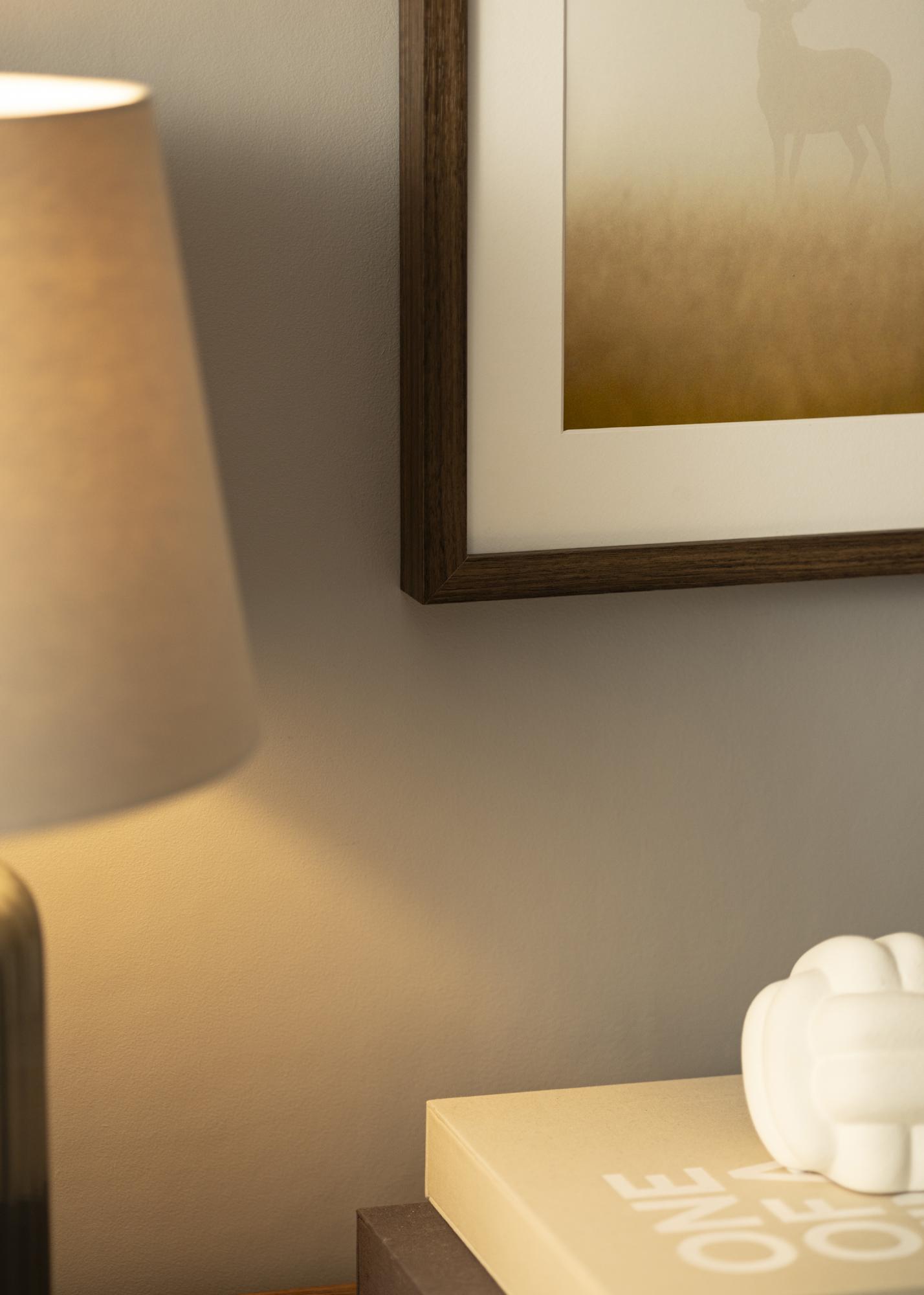 Der Rahmen hat eine 21 mm breite Leiste und eine Tiefe von 38 mm, was ein stabiles und robustes Gefühl vermittelt, ohne das Motiv zu überdecken. Die geraden Kanten und das schlanke Profil tragen zu einem modernen und eleganten Design bei, das sich leicht in verschiedene Einrichtungsstile einfügt. Die subtilen Farbschattierungen in der Maserung fügen zudem Tiefe und Variation hinzu, was jeden Bilderrahmen einzigartig macht.