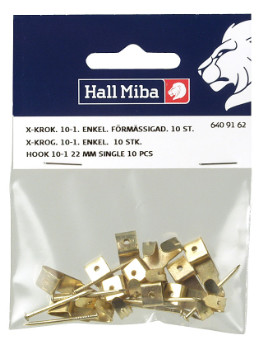 Messingfarbener X-Haken zur Anbringung an Holz- oder Gipswänden. Kann eine Belastung von bis zu 5 kg standhalten.
