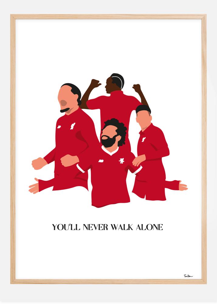 Das Fußballposter zeigt vier Spieler der Liverpooler Mannschaft in stilisierter Form in ihren roten Trikots. Unter den Spielern stehen die Worte You'll Never Walk Alone, das Motto des Vereins, aber auch ein wichtiges Lebenszitat, mit dem man sich jeden Morgen aufs Neue motivieren kann.