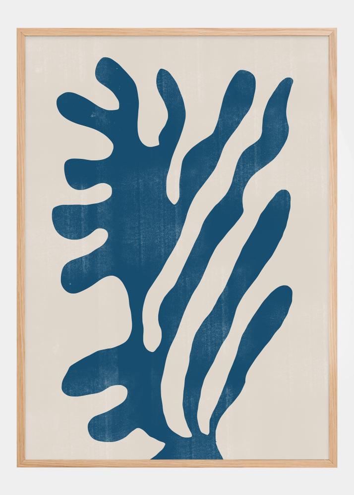 Dieses kühne und lebhafte Poster fängt das Wesen eines abstrakten Laubwerks mit seinen schwingenden blauen Linien vor einem cremigen Hintergrund ein. Das stilisierte Motiv erinnert an Unterwasserpflanzen oder Federn, die im Wind tanzen, was ein Gefühl von Freiheit und Natur vermittelt. Dieses Kunstwerk kombiniert organische Schönheit mit einer modernen grafischen Designästhetik.