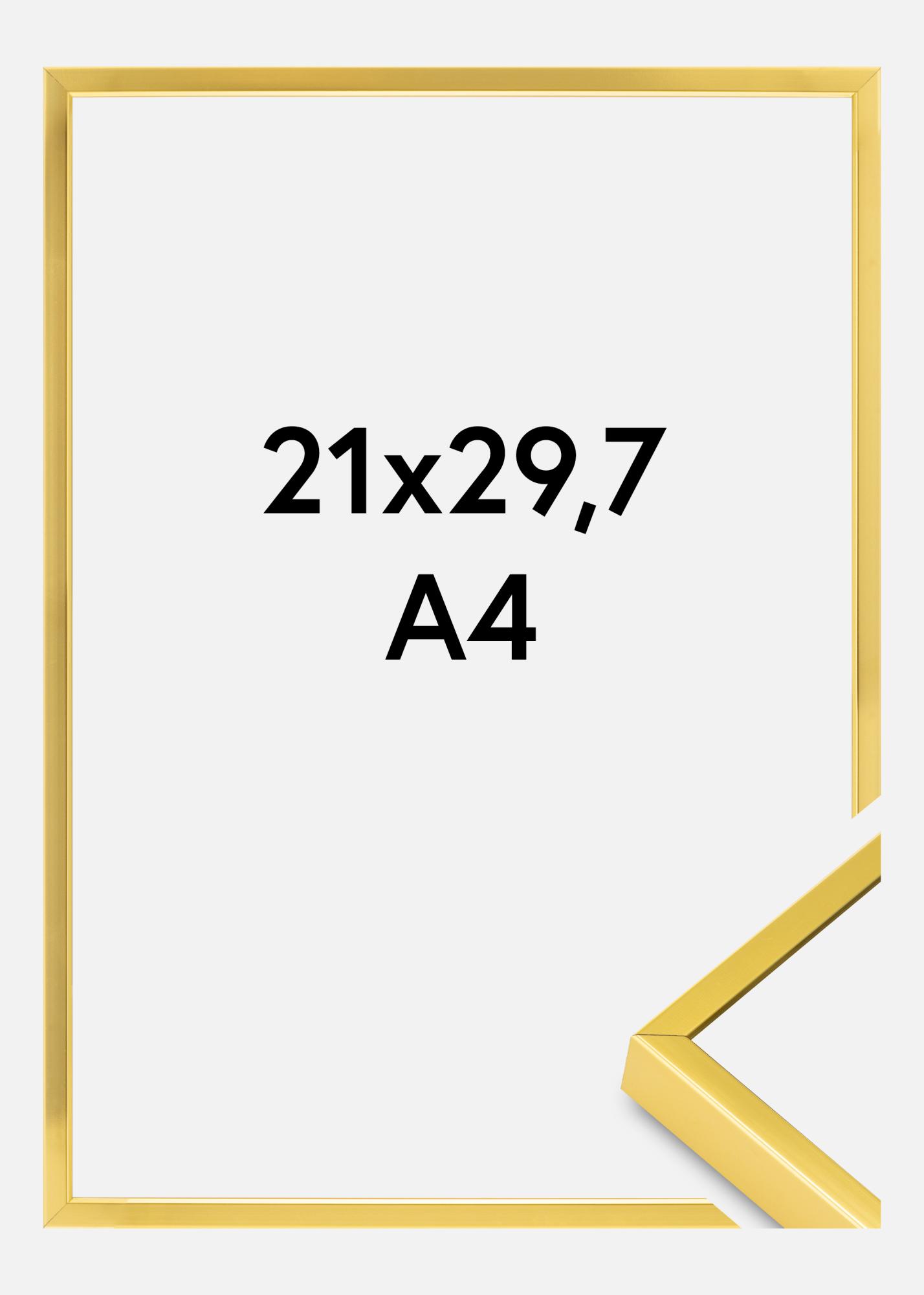 Geben Sie Ihren Bildern die Aufmerksamkeit, die sie verdienen, mit unserem eleganten, goldfarbenen Rahmen in der Größe 21x29,7 cm (A4). Dieser glänzende goldene Bilderrahmen verleiht Ihrem Zuhause oder Büro eine luxuriöse Note. Der schmale Rahmen, nur 7,8 mm breit, bietet eine schöne Einrahmung, ohne vom Motiv abzulenken.