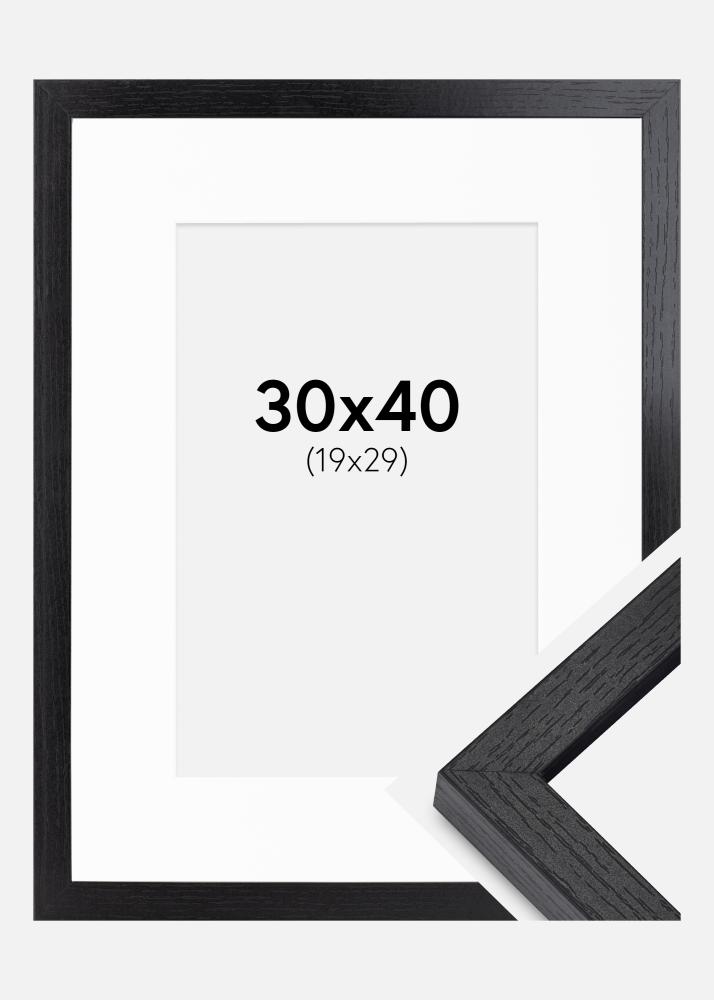 Dieser elegante schwarze Rahmen mit Passepartout ist perfekt, um Ihre Lieblingsbilder im Format 20x30 cm hervorzuheben. Mit einer Rahmenbreite von 20 mm und einer Tiefe von 30 mm bietet er eine stilvolle Rahmung, die in die meisten Haushalte passt.