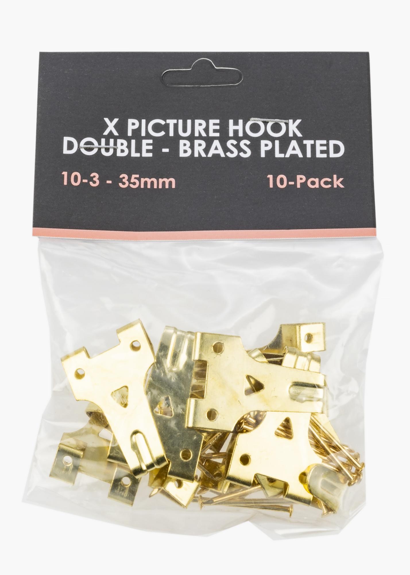 Bilderhaken mit Stiften für die Befestigung an Holz- oder Gipswänden. Hält eine Belastung bis zu 10 kg aus. Messingfarben. Für Tipps und Tricks, wie du deine Bilder an einer Gipswand aufhängen kannst, schau einfach rein in unseren Guide – Bilderrahmen an einer Gipswand befestigen –