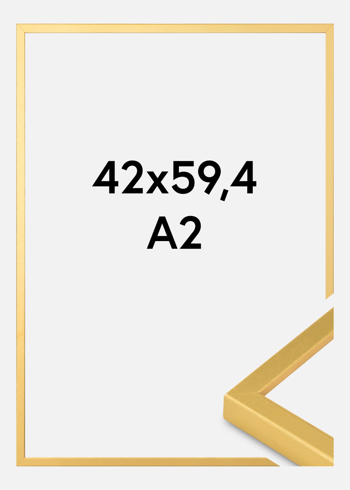 Zum Schutz Ihrer Bilder hat der Rahmen ein kristallklares und splitterfreies Acrylglas. Das Acrylglas ist auf beiden Seiten mit einer Schutzfolie bedeckt, die vor der Verwendung entfernt werden sollte, um optimale Klarheit zu gewährleisten. Mit seiner Größe von 42 x 59,4 cm ist dieser goldfarbene Rahmen nicht nur eine praktische Lösung, um Ihre Bilder zu präsentieren, sondern auch ein stilvolles Einrichtungselement, das den gesamten Raum hebt.