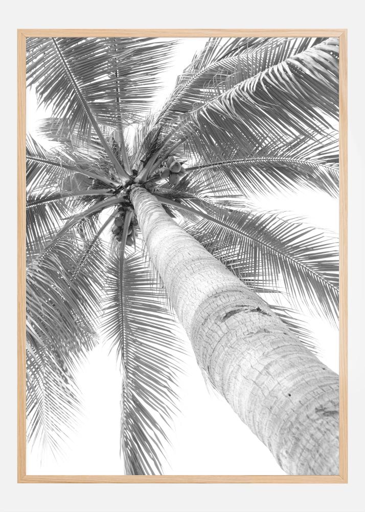 Dieses minimalistische und elegante schwarz-weiße Poster zeigt eine Palme aus einer ungewöhnlichen Perspektive, mit dem Blick nach oben in den Himmel gerichtet. Der Kontrast zwischen dem detailreichen Laubwerk der Palme und der glatten Rinde erzeugt eine dynamische Textur, die das Wesen tropischer Schönheit einfängt. Die schwarz-weiße Behandlung verleiht ein zeitloses und anspruchsvolles Gefühl, das die Einrichtung jedes Raumes aufwertet.