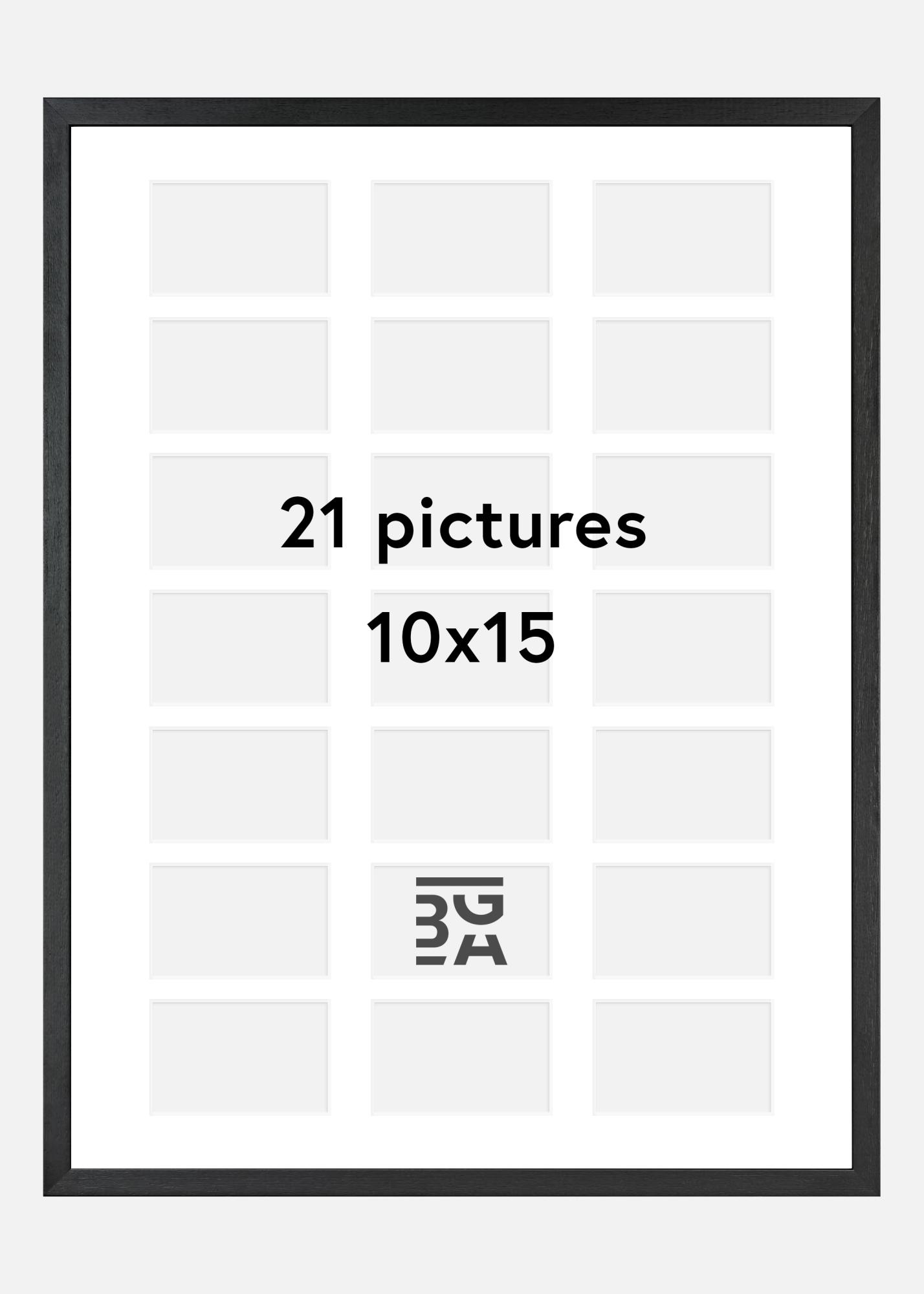 Der Collage-Bilderrahmen Black Wood mit einem Passepartout für 21 Bilder ist ein optimaler Collagerahmen für Kinderfotos, Fotos von Haustieren oder auch Bilder von einer tollen Reise. Durch den schwarzen Bilderrahmen in Kombination mit den weißen, stilvollen Passepartouts kommen die Bildmotive so richtig gut zur Geltung. Dieser Collage-Bilderrahmen passt auch wunderbar zu Fotos in Schwarz-Weiß.