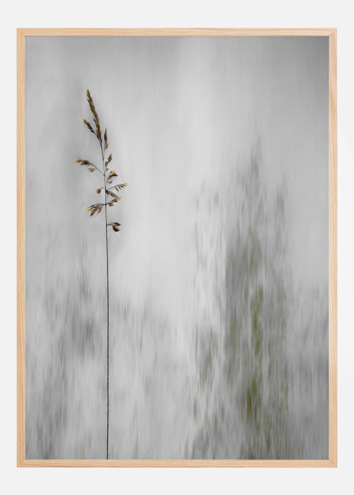 Ein sanftes Poster eines einzelnen Grasblütenstängels vor einem sanften grauen Hintergrund. Das Gold des Grashalms hebt sich klar und deutlich von dem weichen Hintergrund ab, sodass der Blick darauf gerichtet bleibt. Hängen Sie es zu Hause an eine neutrale Wand, um einen Hauch von Magie durch dieses einfache, aber eindrucksvolle Bild zu bringen.