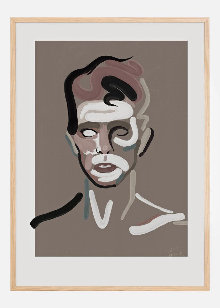Ein abstraktes Porträtposter von David Bowie, das mit dicken Pinselstrichen gemalt wurde. Weiß, Schwarz, Blau und Rosa sind die Farben, die verwendet werden, um ein kraftvolles Porträt von David Bowie zu schaffen. Kühne Pinselstriche umreißen sein Gesicht, während er aus dem Fenster blickt - ein fesselndes, abstraktes Werk, das perfekt geeignet ist, um eine schlichte Wand zu Hause mit Leben zu erfüllen.