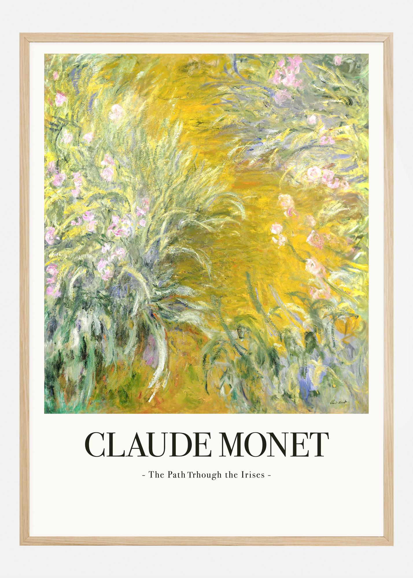Der Titel des Posters, 'Der Pfad durch die Iris', führt uns in Claude Monets Vision seines Gartens ein, ein Ort, der ihm unendliche Inspiration bot. Dieses Gemälde, das mit lebhaften gelben und grünen Tönen fließt, ergänzt durch die charakteristischen lila und rosa Iris, fängt den Blick des Betrachters ein und lädt zu einem Spaziergang entlang des unsichtbaren Pfades ein. Monets Signatur ist dezent in der Ecke platziert, was die Authentizität des Kunstwerks und seine historische Bedeutung verstärkt.