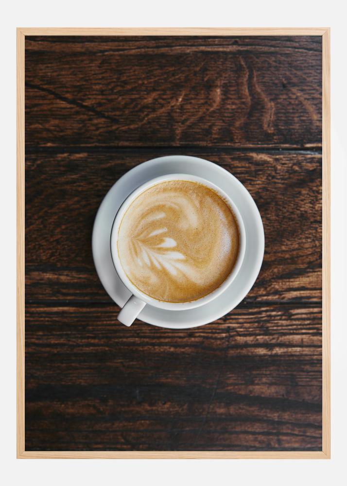 Dieses einladende und wärmende Poster ist eine Hommage an die Kaffeekultur und perfekt für jeden Kaffeeliebhaber. Eine Draufsicht auf eine klassische weiße Kaffeetasse auf einer dunkelbraunen Holzfläche vermittelt ein sofortiges Gefühl von Komfort und einer Pause im Alltag. Der Schaum auf dem Kaffee hat ein feines Kunstmuster, das zu einem Moment der Entspannung und des Genusses einlädt.