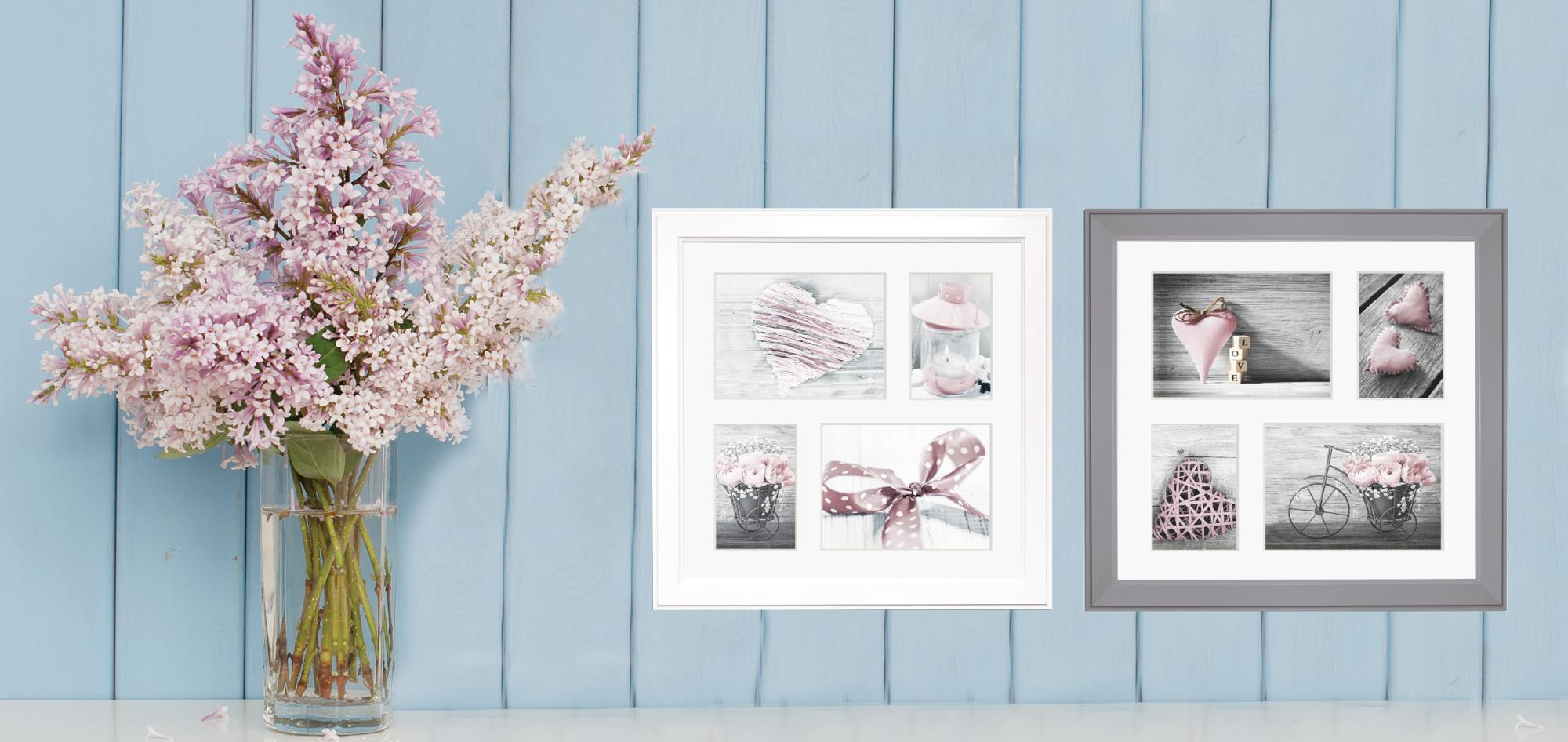 Manchmal ist es gar nicht so einfach, zu entscheiden, welches Foto von der Party oder Hochzeit am besten gelungen ist. Warum also nicht gleich eine Collage gestalten, in der alle Lieblingsfotos Platz finden? Mit diesem schönen Collagen-Rahmen ordnen Sie Ihre Fotos symmetrisch und einheitlich an. Er ist blendend weiß, deshalb einfach mit anderen Farben zu kombinieren, und er brilliert mit schönen Details. Ein weißes Passepartout strukturiert die Fotos und schützt sie gleichzeitig.