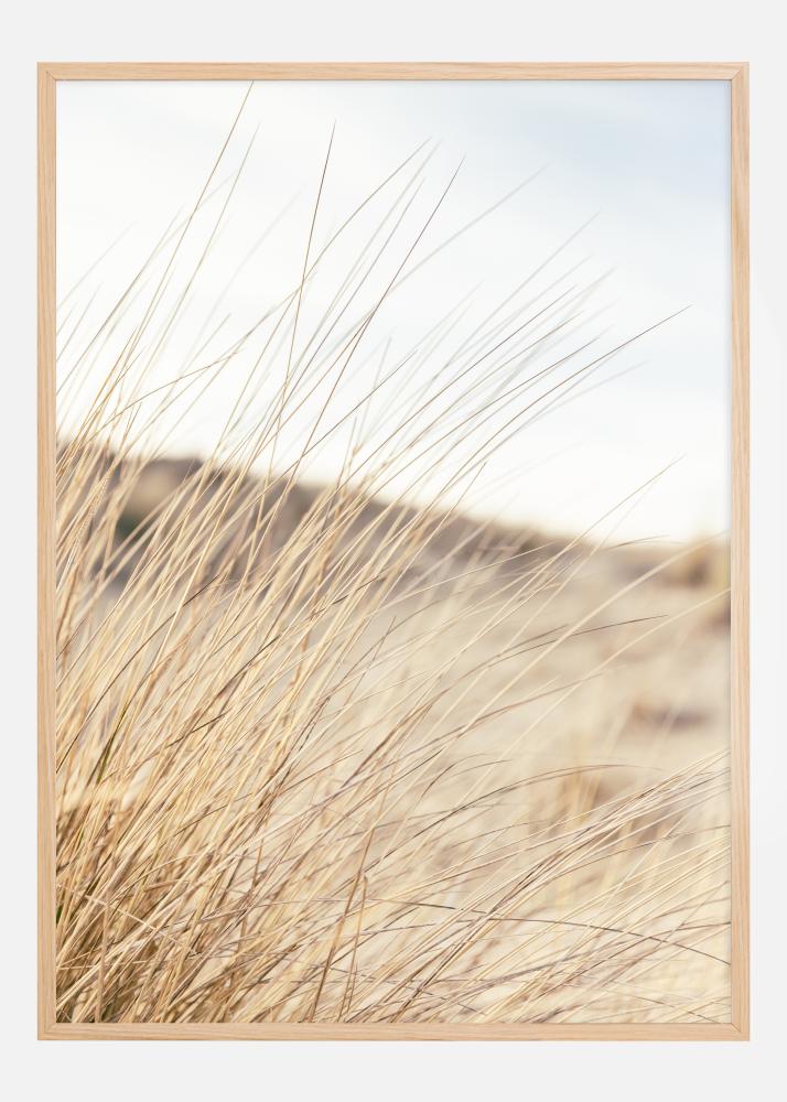 Dieses Poster zeigt die sanfte und stille Landschaft eines Feldes aus trockenem Gras, in dem sich die natürlichen Schattierungen von Beige und Braun vor einem diffusen Hintergrund aus sanften hellen Tönen mischen. Die beruhigende und naturnahe Komposition lädt zur Reflexion ein und hat eine entspannende Wirkung, was sie ideal für Räume macht, die zur Entspannung und Erholung gedacht sind.
