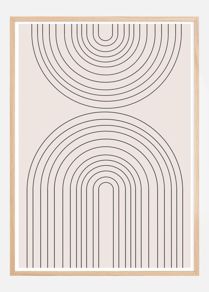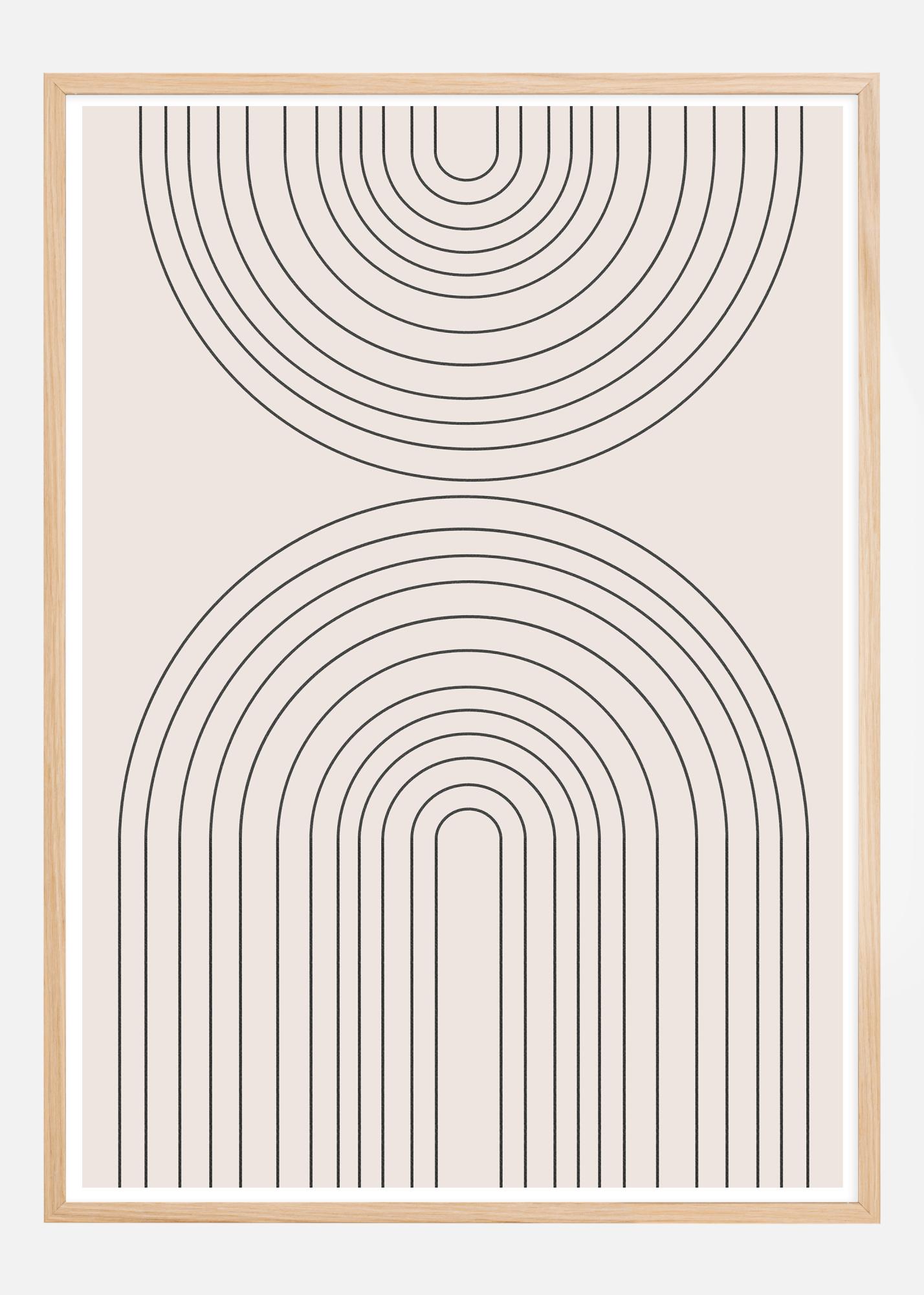Dieses elegant gestaltete Poster präsentiert eine komplexe und hypnotisierende Serie von verflochtenen Bögen, die zwei unterschiedliche Halbkugel-Formen bilden. Mit einer raffinierten und minimalistischen Ästhetik sind die Linien exquisit und präzise gegen einen beruhigenden, neutralen Hintergrund platziert, was es zu einem perfekten Hintergrund für eine moderne und trendige Einrichtung macht. Seine dezente Farbgebung in Schwarz auf Off-White macht es den Kunden einfach, diesen Druck mit verschiedenen Farben und Möbeln zu finden und zu kombinieren.