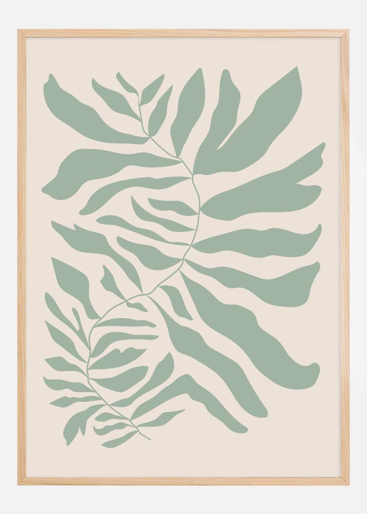 Mit seinem frischen und klaren Design bietet dieses Poster eine Darstellung von grünen Pflanzenblättern auf einem beruhigenden beigen Hintergrund. Seine organischen Linien und natürlichen Formen bringen die beruhigende Präsenz der Natur direkt in Ihren Wohn- oder Arbeitsplatz. Die Farbpalette verwendet verschiedene Grüntöne, von helleren Blättern bis zu dunkleren Konturen, was ein dynamisches, aber harmonisches Gefühl vermittelt. Dieses Druckbild ist eine Hommage an die einfache Schönheit der Natur und kann jedem Einrichtungsstil ein friedliches Element hinzufügen.
