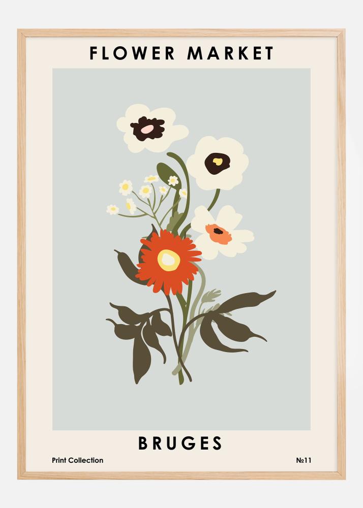 Dieses charmante Poster aus unserer 'Flower Market' Kollektion präsentiert eine eigenartige Auswahl an Blumen, die die Essenz der malerischen und historischen Atmosphäre von Brügge einfängt. Mit einer bezaubernden Sammlung von Blumen in den Schattierungen von sonnengelb, tiefem Orange und sanftem Weiß, hervorgehoben auf einem gedämpften graublauen Hintergrund, bietet dieser Druck eine ästhetische Freude, die an die ruhigen und farbenfrohen Blumenmärkte in Belgien erinnert.