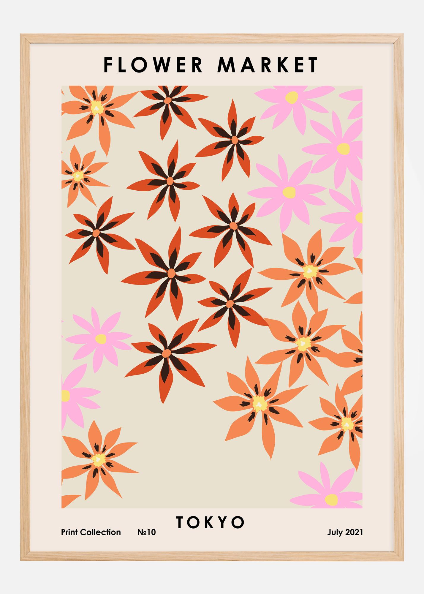Dieses lebhafte Poster fängt die Essenz eines Blumenmarktes in Tokio mit seinem sprudelnden Muster von Blumen in Koralle, Schwarz und Rosa vor einem hellen beigen Hintergrund ein. Dieses Poster verleiht jedem Raum mit seinem spielerischen und zeitgenössischen Gefühl ästhetischen Charme. Jede Blume ist einfach, aber künstlerisch dargestellt, mit Nuancen, die dem Design ein Gefühl von Tiefe und Dimension verleihen.