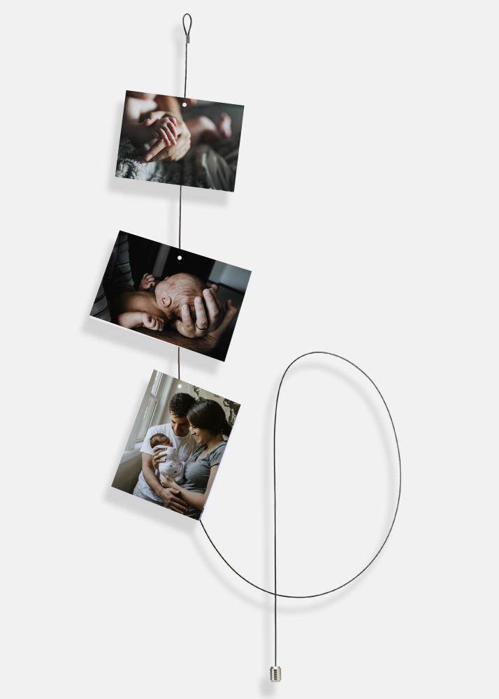 Fotoseil aus Metall mit einer Länge von 150 cm, an dem Sie Ihre Bilder mit 10 St. starken Fotomagneten, die mitgeliefert werden, befestigen. Perfekt geeignet, wenn Sie Ihre Lieblingsbilder auf eine andere Art und Weise herzeigen möchten.
