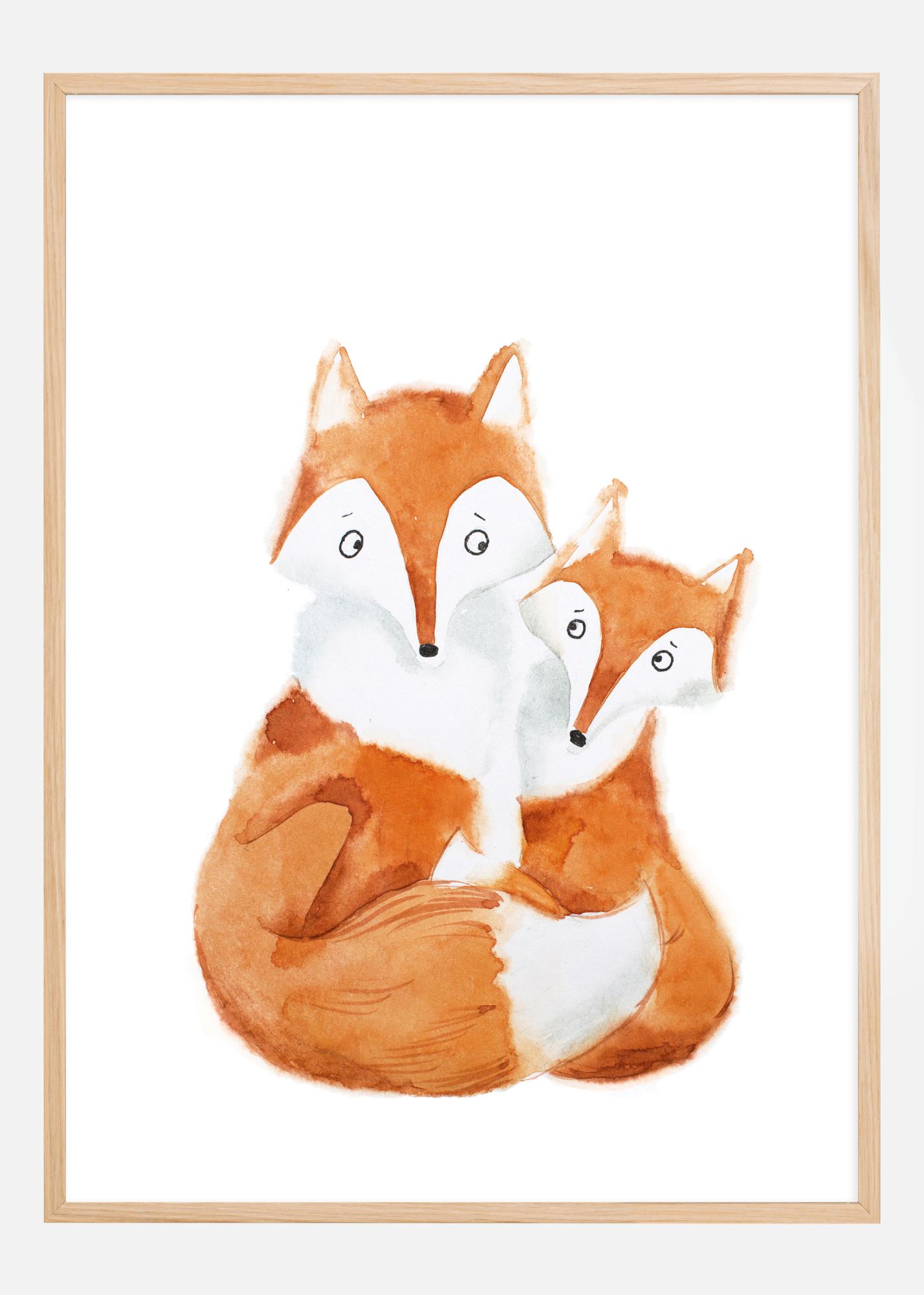 Fügen Sie ein Gefühl von Wärme und familiärer Nähe mit diesem bezaubernden Fuchs-Familienposter ein. Es zeigt einen großen Fuchs, der seinen Jungen umarmt, ein Bild, das Liebe und Sicherheit ausstrahlt. Die weichen, erdigen Töne von Rostbraun und Weiß in der Illustration vermitteln eine natürliche und beruhigende Wirkung, perfekt, um eine gemütliche Atmosphäre in einem Kinderzimmer oder einem anderen Teil des Hauses zu schaffen, in dem Wärme und Fürsorge hervorgehoben werden sollen.