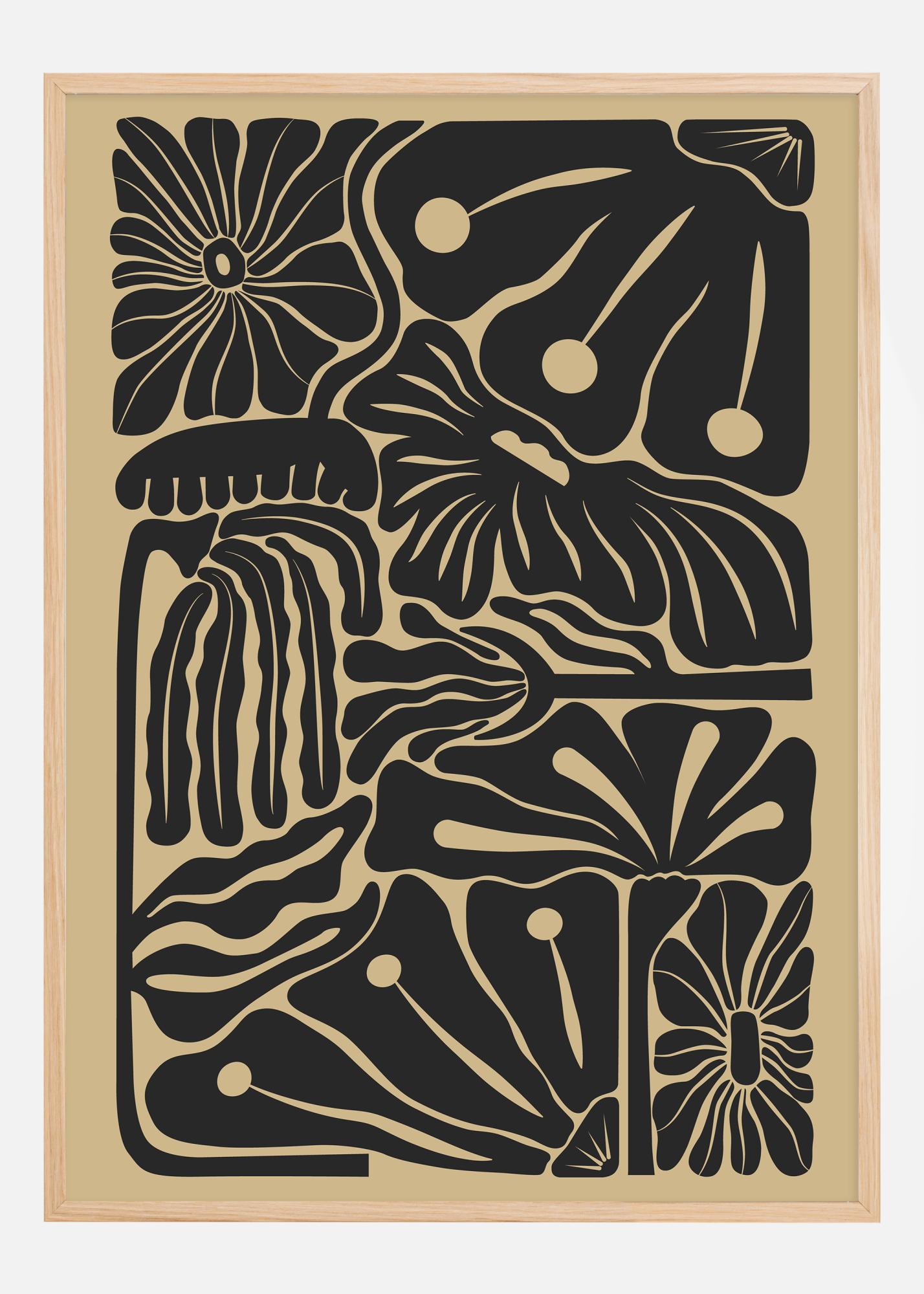 Dieses stilvolle Poster vermittelt einen modernen und schlichten Eindruck, perfekt für den trendbewussten Inneneinrichter. Das Motiv zeigt eine Reihe abstrakter Formen und Linien, die an Blumen und Blätter in einem organischen Muster erinnern. Die monochrome Ausführung mit kräftigen schwarzen Details auf einem beigen Hintergrund schafft einen starken visuellen Kontrast, der das Auge einfängt. Ein Werk, das hervorragend in einen minimalistischen oder skandinavischen Einrichtungsstil passt und ein Gefühl von Natur vermittelt, ohne dabei zu viel visuellen Raum einzunehmen.