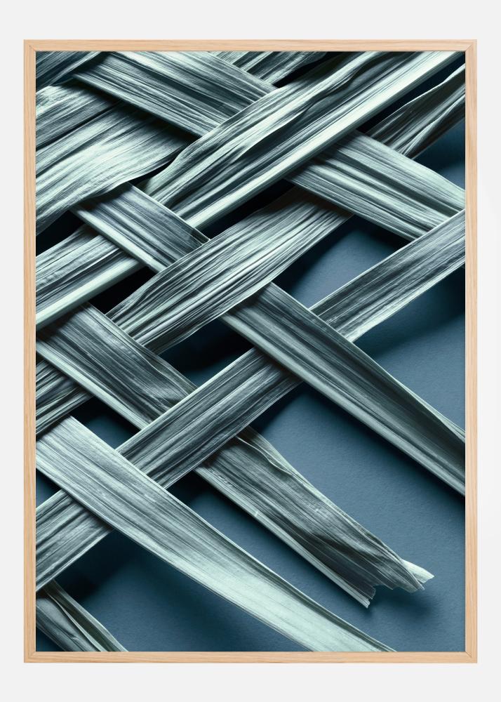 Dieses zeitgenössische Poster präsentiert ein faszinierendes und abstraktes Motiv von sich kreuzenden Linien in einem sanften, bläulich-grünen Ton. Die minutiös arrangierte Komposition der Linien schafft ein dynamisches Muster, das ein Gefühl von Bewegung und Textur vermittelt, wodurch das Bild sowohl visuell interessant als auch nachdenklich stimmend ist.