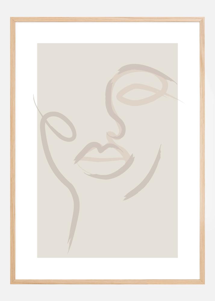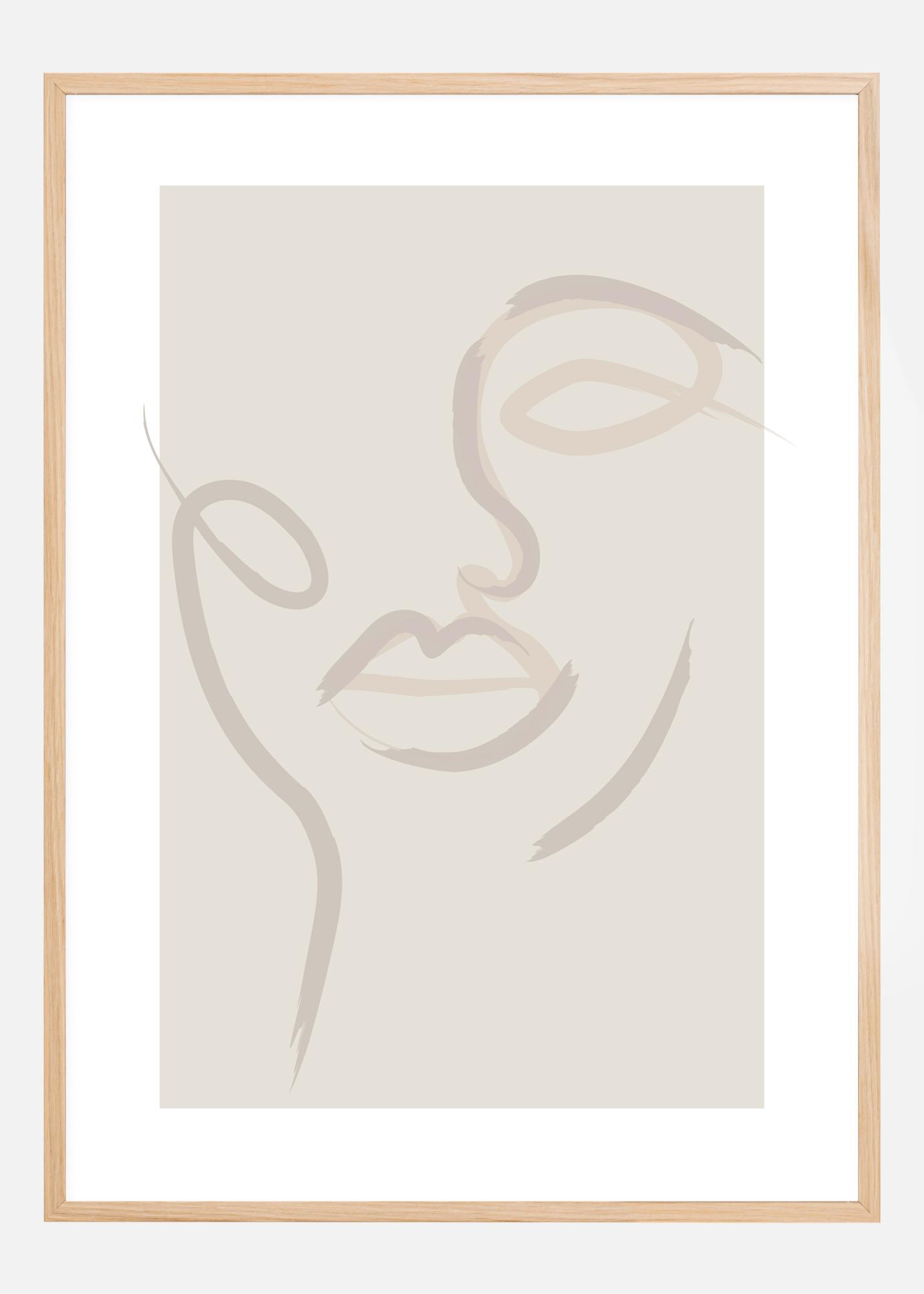 Ein schönes Porträt, das mit einfachen Pinselstrichen gemalt wurde. Einfache Linien, die das Gesicht einer Frau auf einem beigefarbenen Hintergrund formen. Einfachheit in ihrer schönsten Form. Durch drei einfache Pinselstriche fragen Sie sich vielleicht, wer diese schöne Frau ist.