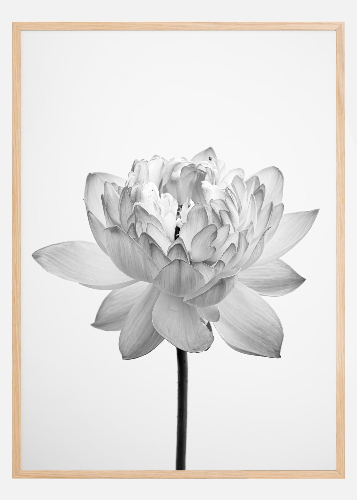 Dieses Poster stellt ein zeitloses und elegantes schwarz-weißes Bild einer Blume in voller Blüte dar. Die detailreiche Darstellung jedes Blattes zeigt das Kunstwerk der Natur und bietet eine fast meditative Betrachtung. Dieses einfache, aber kraftvolle Bild ist eine Studie in Form, Licht und Schatten und wie diese Elemente zusammenwirken, um die Schönheit der natürlichen Welt hervorzuheben.