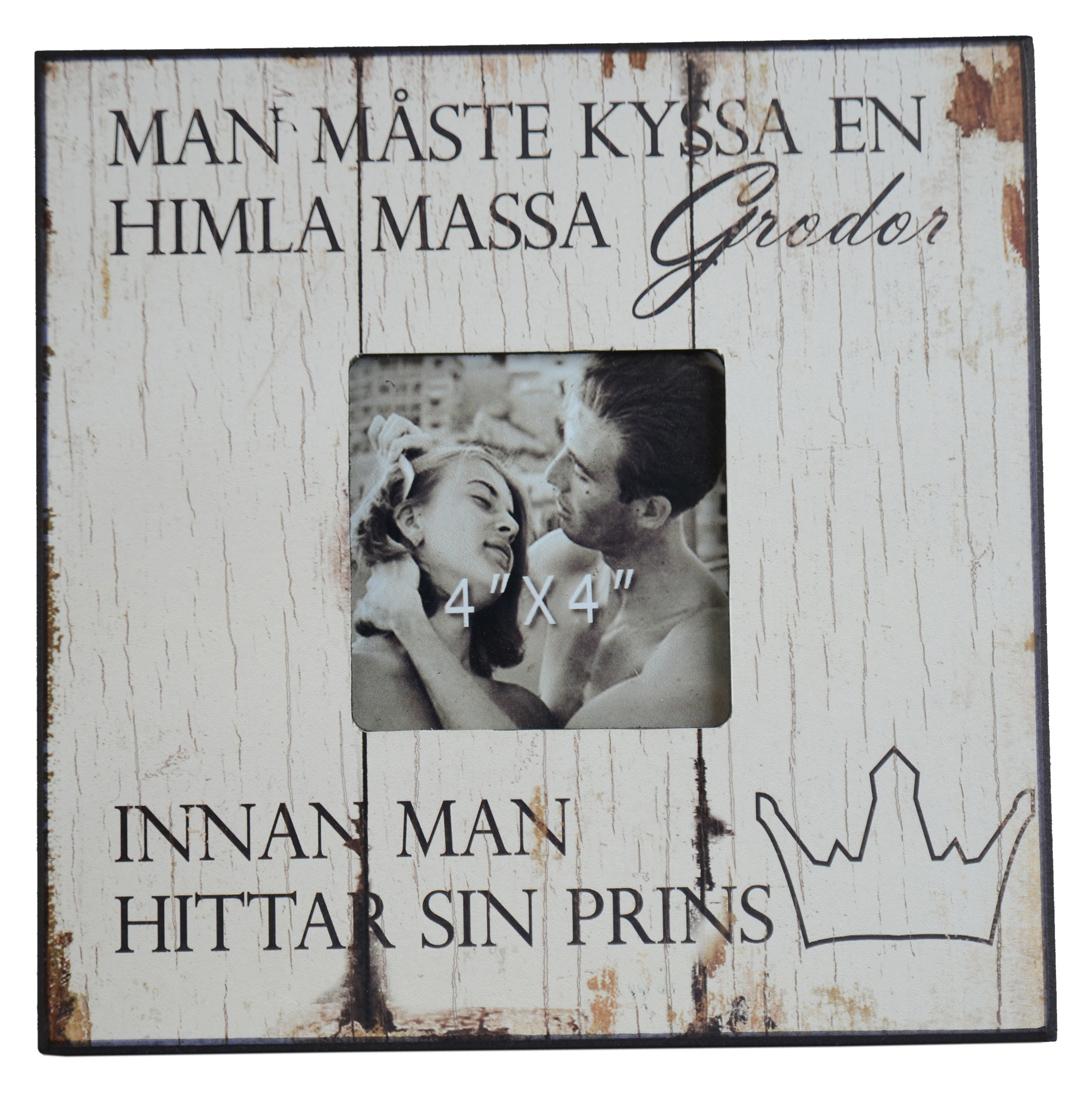 Frosch-Prinz Creme ist ein attraktiver Rahmen in herrlichem Vintage-Stil mit abgenutzten Farben und Platz für ein eigenes Bild im Format 10x10 cm. Der Rahmen enthält folgende Botschaft: "Man muss viele Frösche küssen, bevor man seinen Prinzen findet."